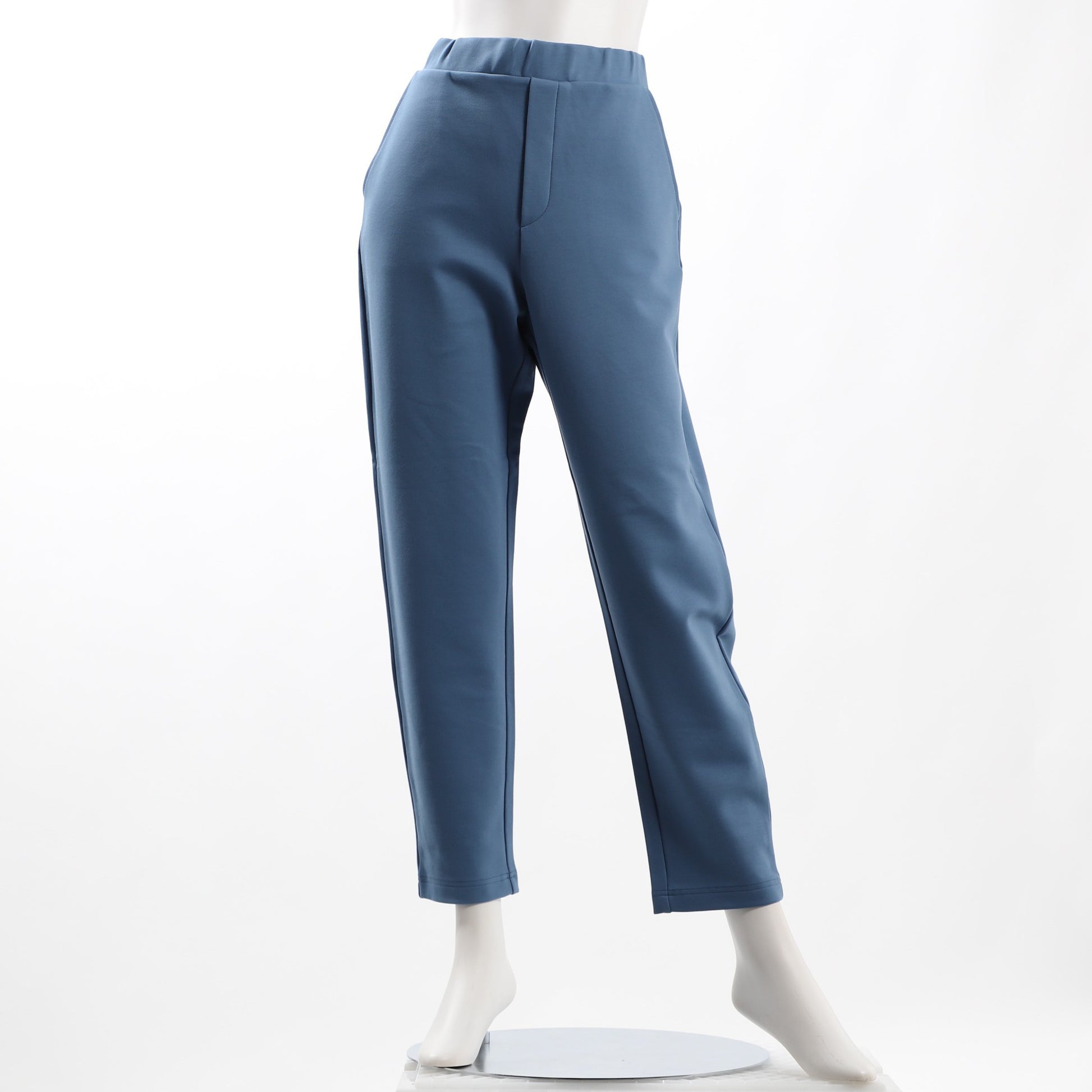 履き心地の楽なウエストゴム仕様のテーパードパンツです。ボウタイブラウスにパンプスを合わせて女性らしく、襟付きシャツにローファーを合わせてマニッシュに仕上げても良いですね。