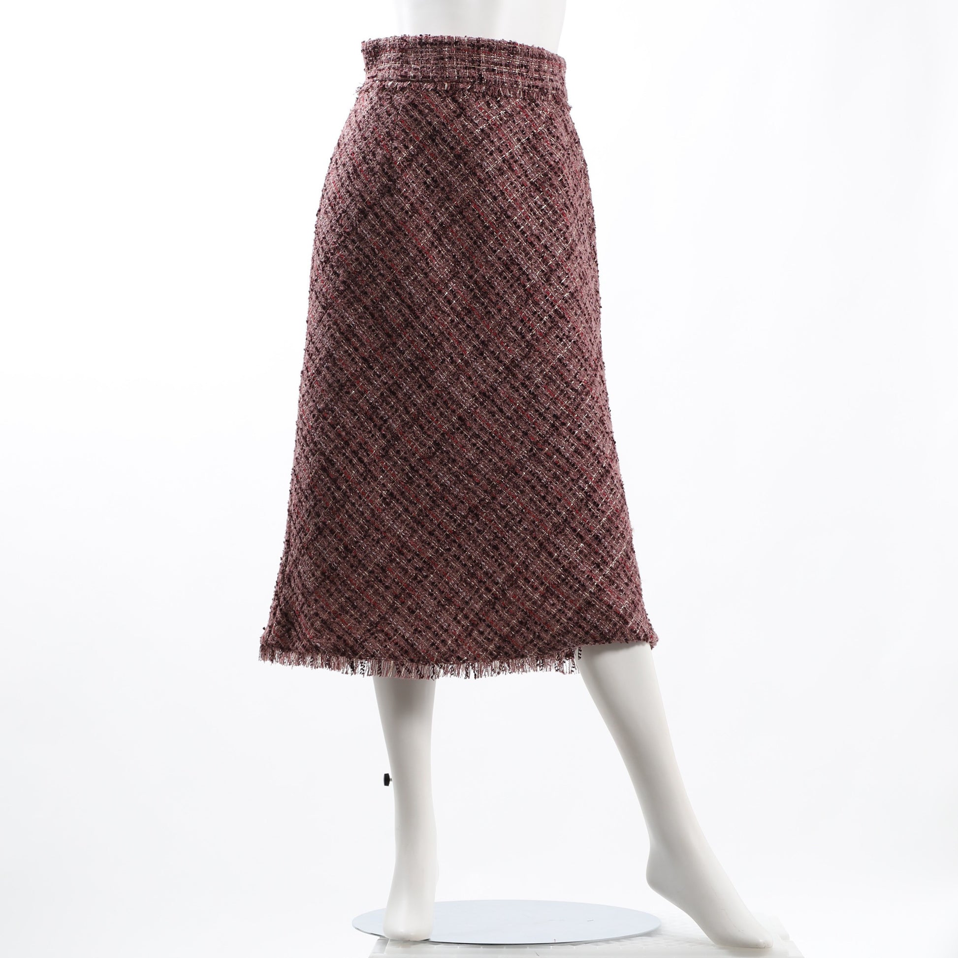 暖かみのあるモールツイードで仕上げたスカート。腰まわりをすっきりさせて、裾にかけて広がる上品なシルエットです。裾は細かいフリンジデザインで、ブーツ合わせでも軽やかに見せてくれます。※バックウエストはファスナー付き