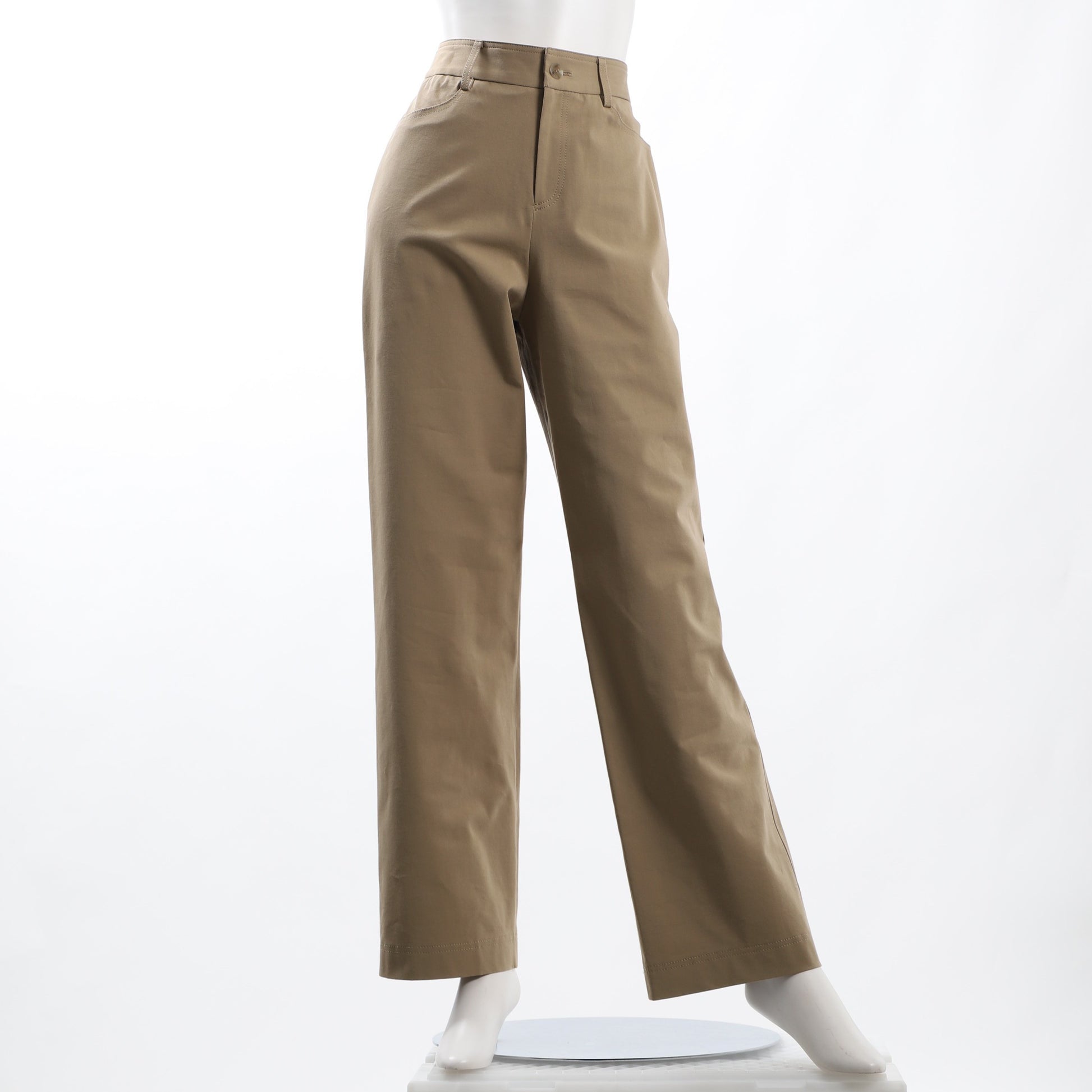 ヒップから裾にかけてほどよいゆとりのセミワイドのカジュアルパンツ。やや太めのウエストベルト(4.5cm)で細見え効果があり、ウエスト部分は伸縮性抜群、サスティナブル素材の2WAYストレッチでノンストレスで快適なはきごこちです。