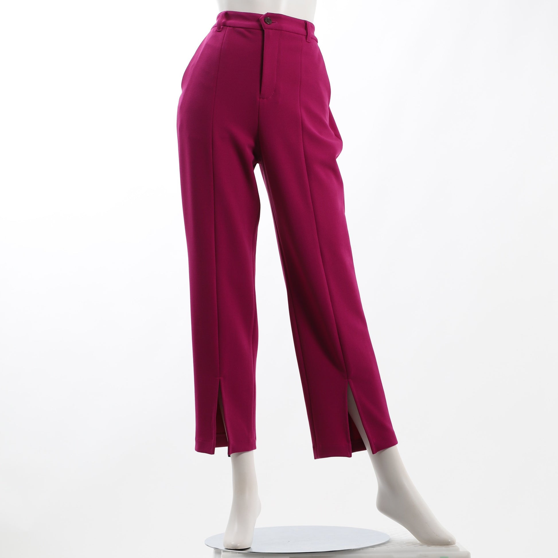 フロントスリット入りのストレートパンツです。スタンドカラーブラウスとパンプスを合わせて綺麗めなスタイルに、カットソーとスニーカーを合わせてカジュアルスタイルも素敵ですよ。