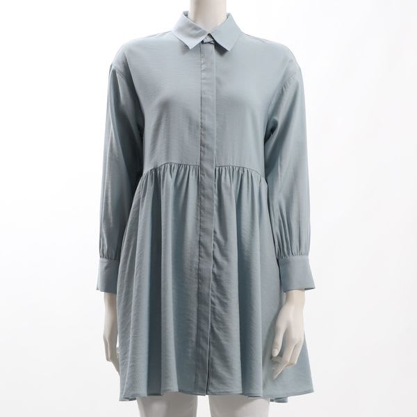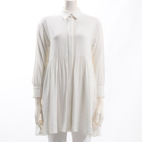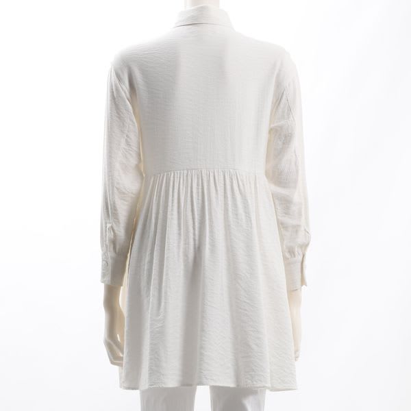 ウエストの切り替えがポイントのシャツカラーブラウスです。タックパンツを合わせてマニッシュに、ロングタイトスカートを合わせてフェミニンに仕上げても良いですね。