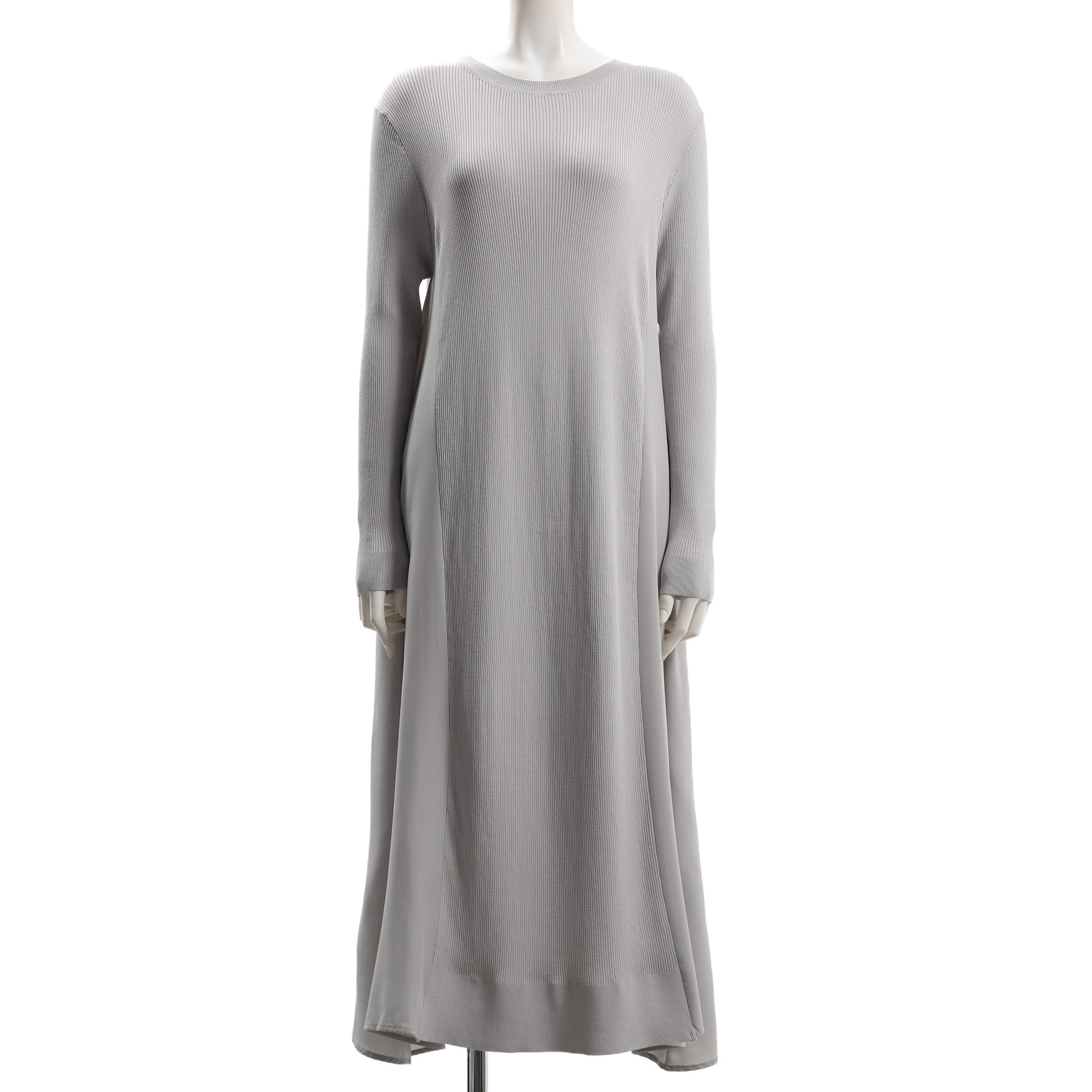 バックのラインがポイントのリブワンピース。スニーカーやスリッポンを合わせてカジュアルに、パンプスやローファーを合わせてきれいめに仕上げるのもおすすめです。