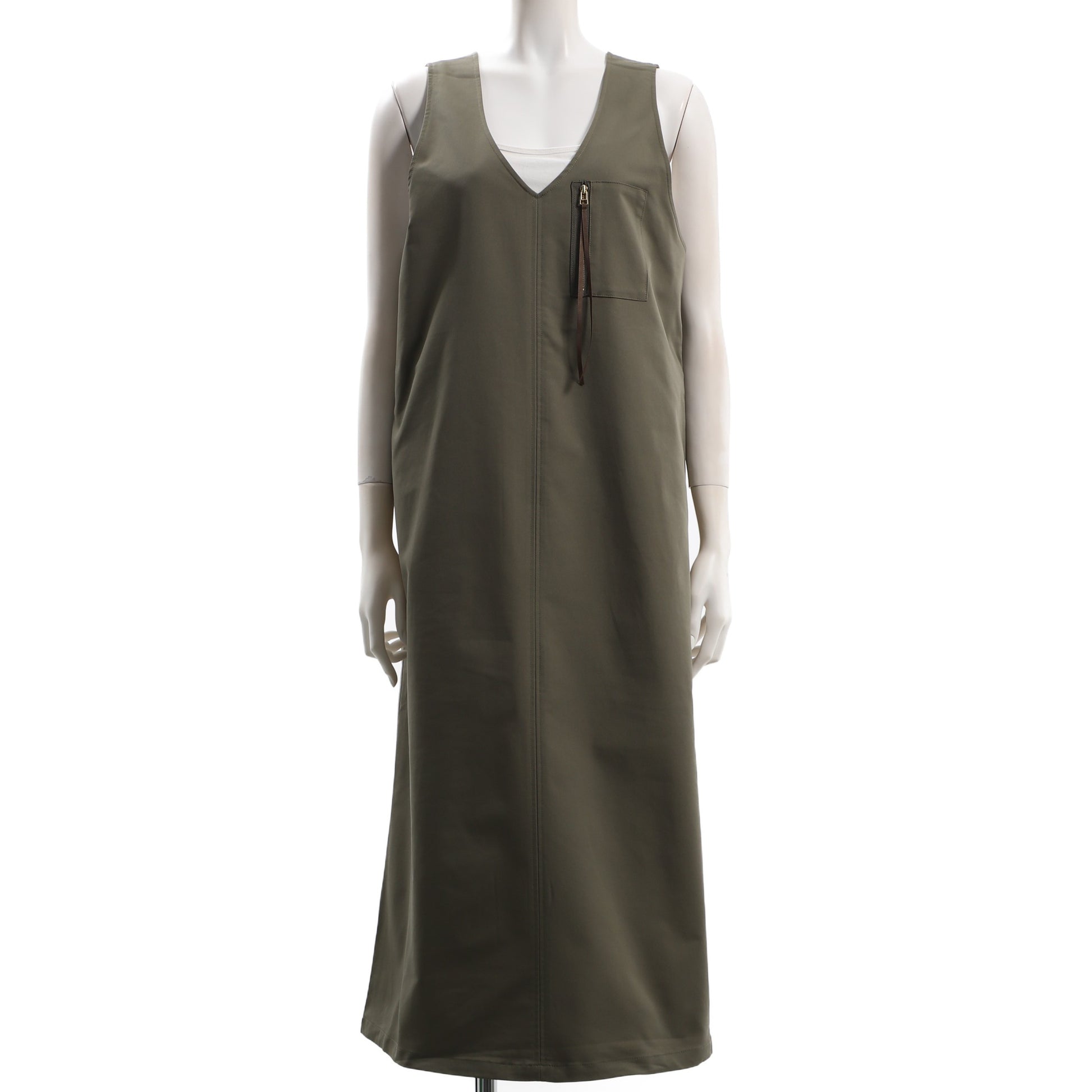 フロントのジップ付きポケットがポイントのジャンパースカートです。襟付きのブラウスとパンプスを合わせてきれいめに、カットソーとスニーカーを合わせてカジュアルに着こなしても良いですね。