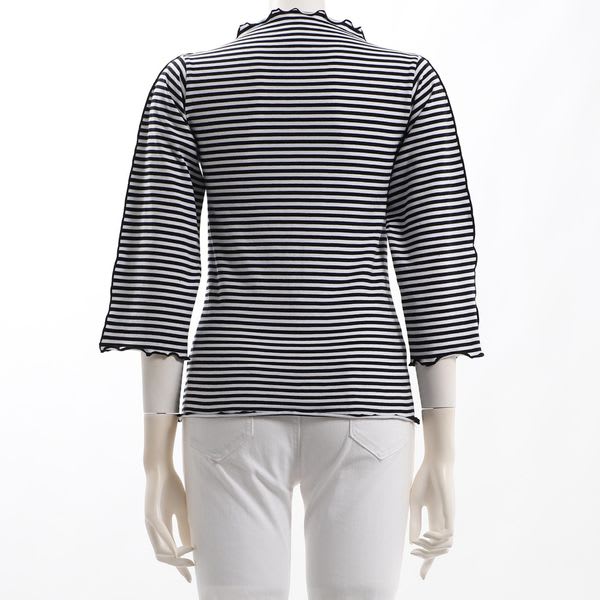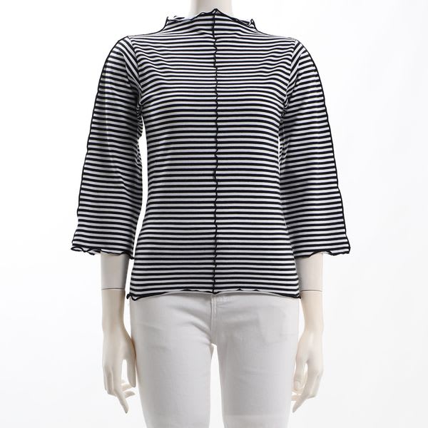 メロウデザインがポイントのカットソー。ボトムスにはフレアスカートを合わせてフェミニンに、ワイドパンツでカジュアルに仕上げても素敵です。