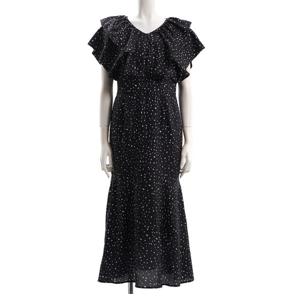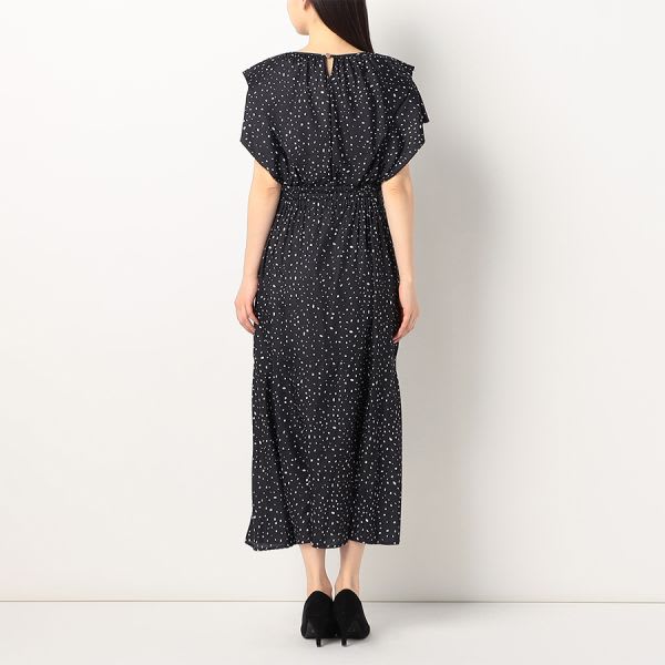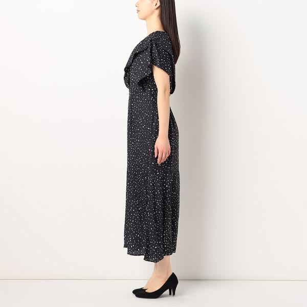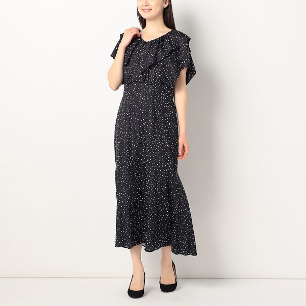 フロントフリルデザインランダムドット柄ワンピース