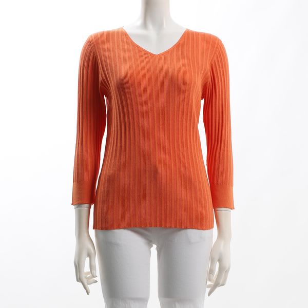 Vネックリブニットです。ワイドパンツとポインテッドトゥパンプスでスタイリッシュスタイルや、デニムパンツとスニーカーでカジュアルスタイルのどちらもオススメですよ。