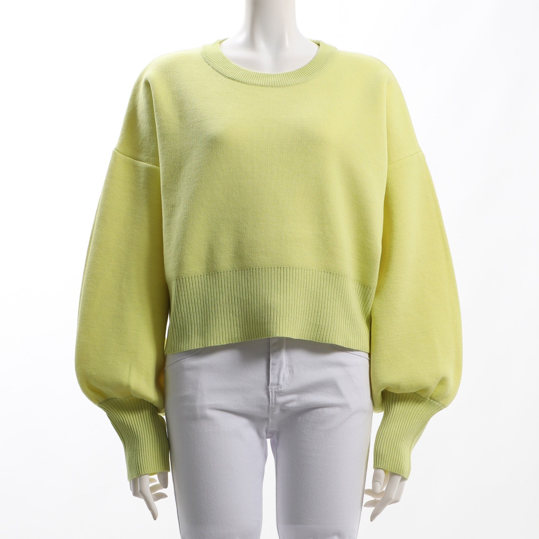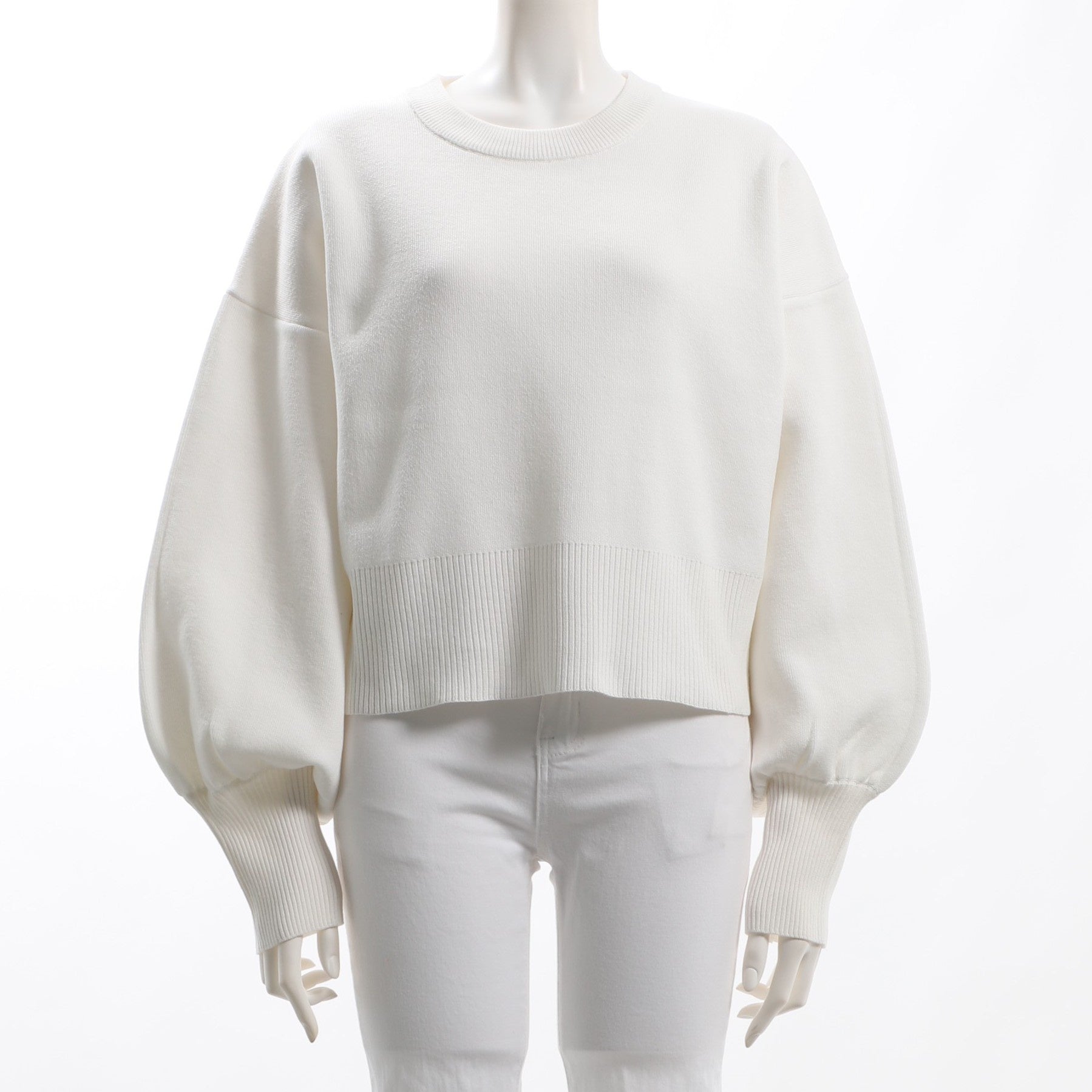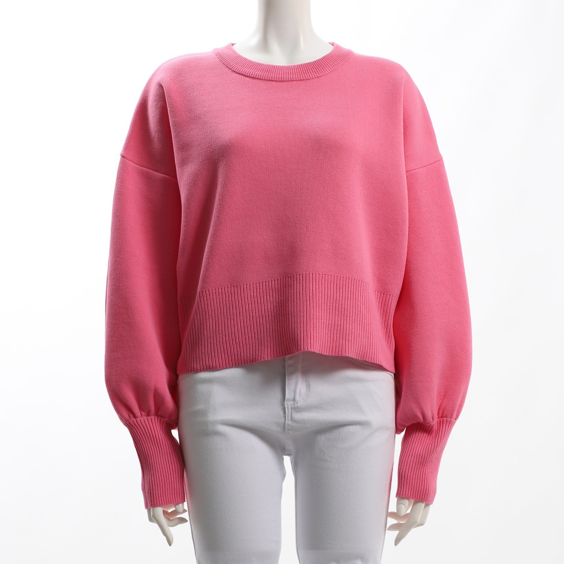 ショート丈のクルーネックニットです。デニムパンツとスニーカーでカジュアルスタイルや、プリーツスカートとバレエシューズでレディライクスタイルも素敵ですよ。