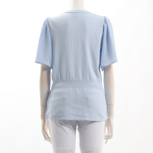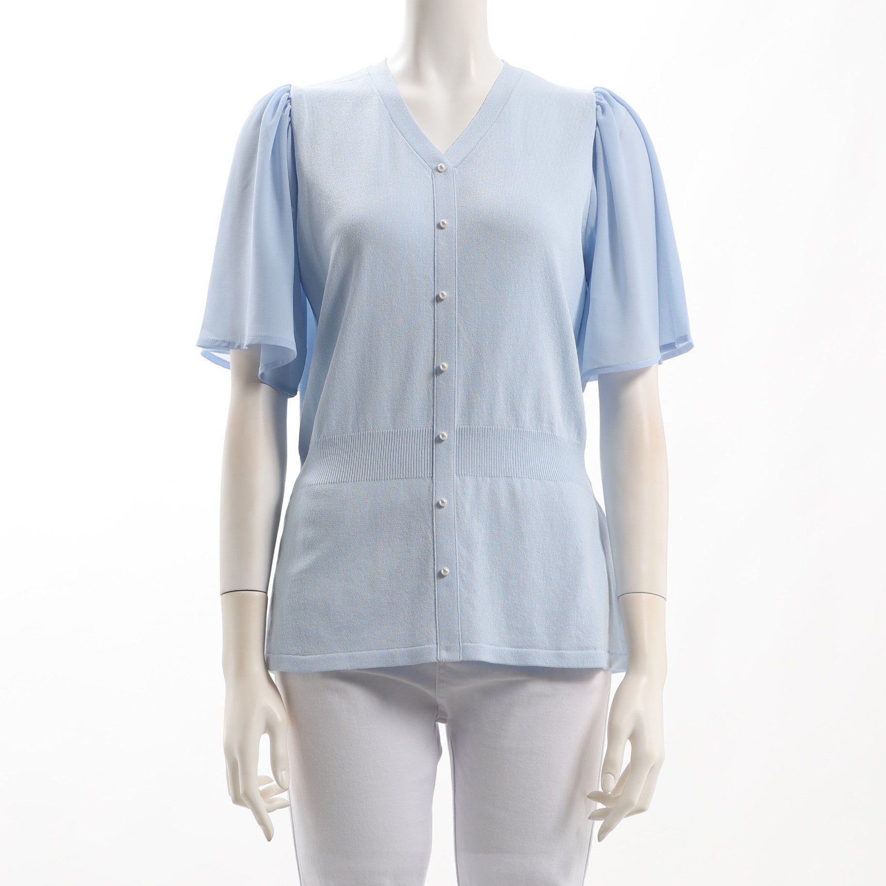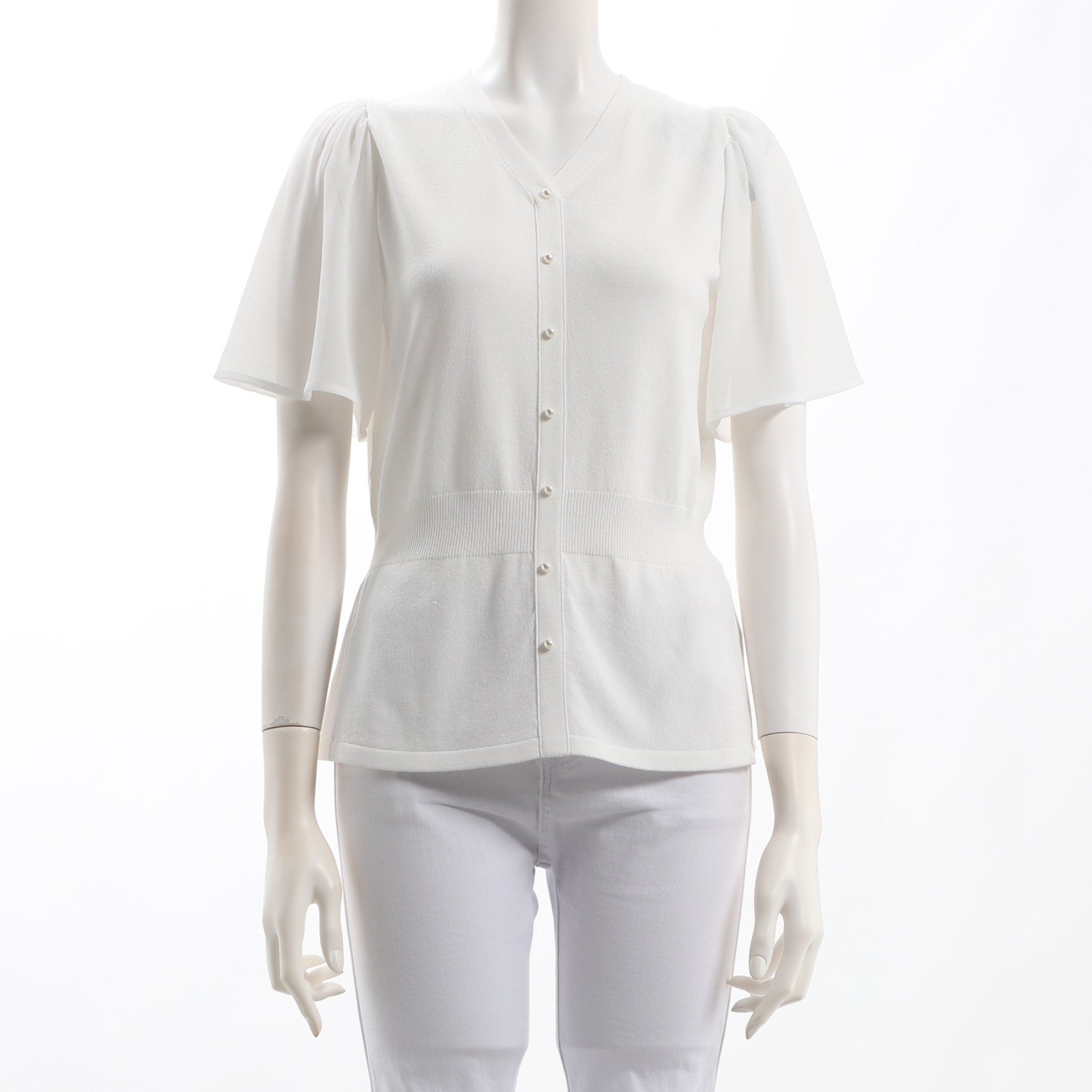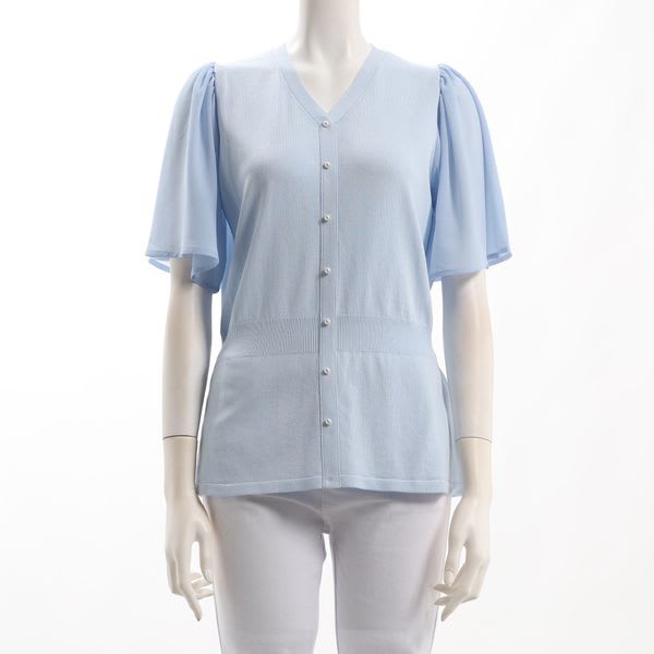 パールボタンやペプラムデザインがポイントのニットです。テーパードパンツにポインテッドトゥパンプスを合わせて、キレイめに。デニムパンツにスニーカーを合わせて、カジュアルに着こなしてもステキですね。