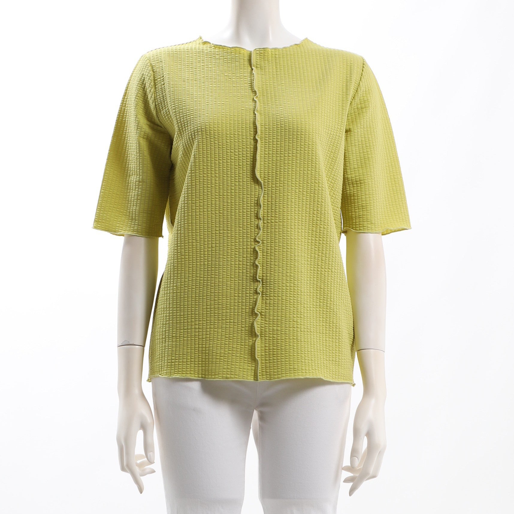 クルーネックカットソーです。デニムパンツを合わせてカジュアルスタイルに、タイトスカートを合わせて綺麗めなスタイルもいいですね。