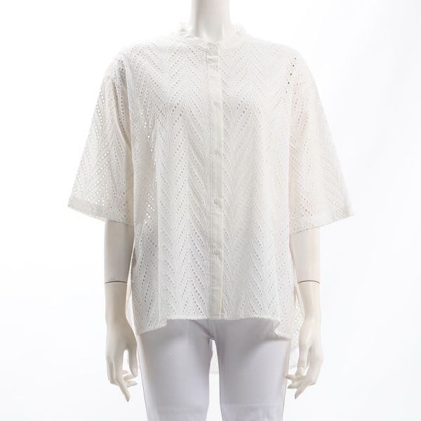 リーフ刺繍コットンレースブラウス