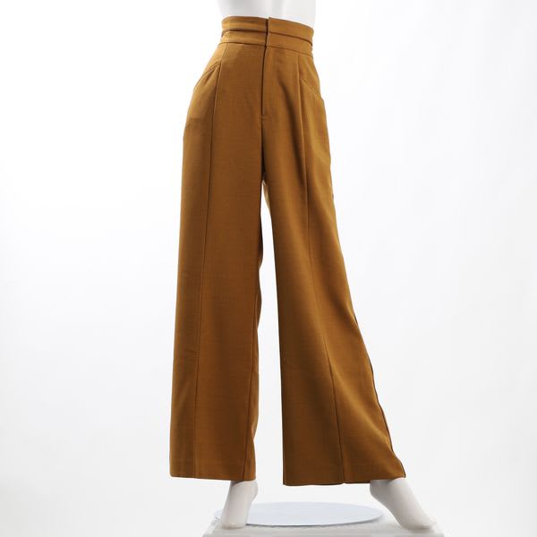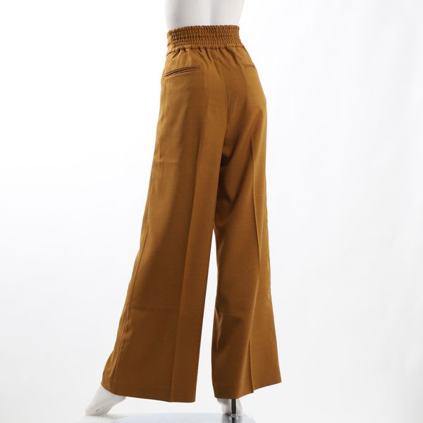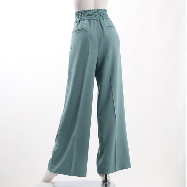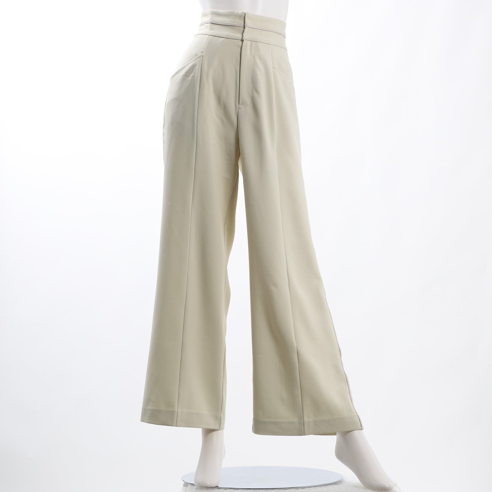 ウエストとサイドにパイピングラインが入ったハイウエストのワイドパンツです。リブカットソーとスニーカーを合わせてカジュアルスタイルに、スタンドカラーブラウスとラウンドパンプスを合わせてレディライクなスタイルもいいですね。