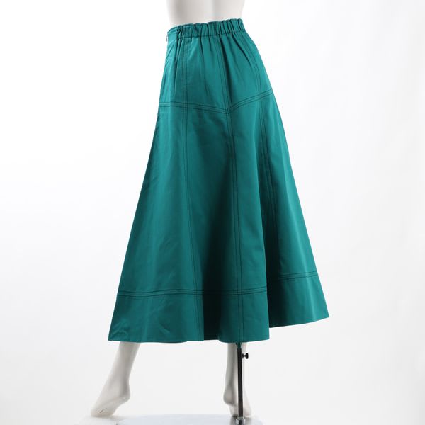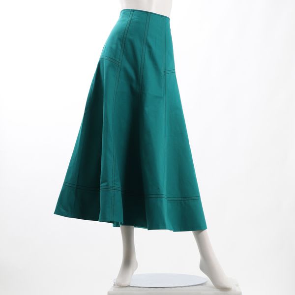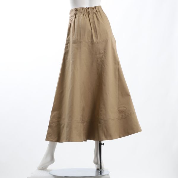ハイウエストのAラインスカートです。リブカットソーとスニーカーを合わせてカジュアルスタイルに、スタンドカラーブラウスとラウンドパンプスを合わせてレディライクなスタイルもいいですね。