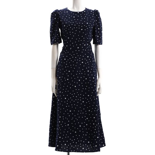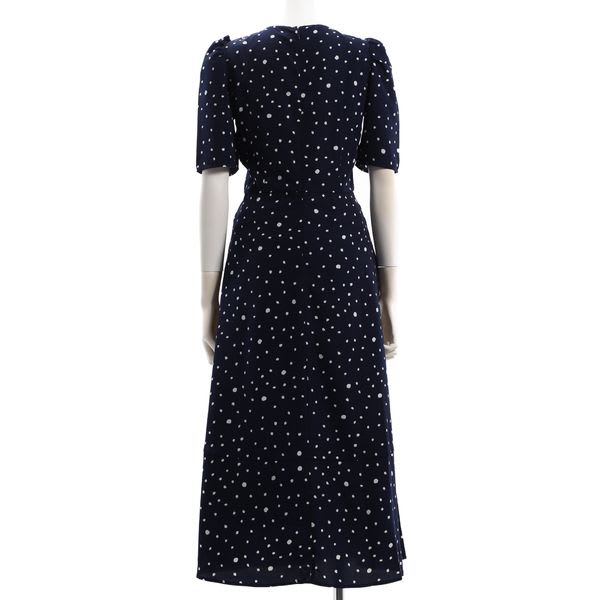 ドット柄のワンピースです。ラウンドパンプスを合わせてレディライクなスタイルに、スニーカーを合わせてカジュアルスタイルもいいですね。