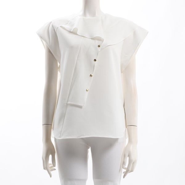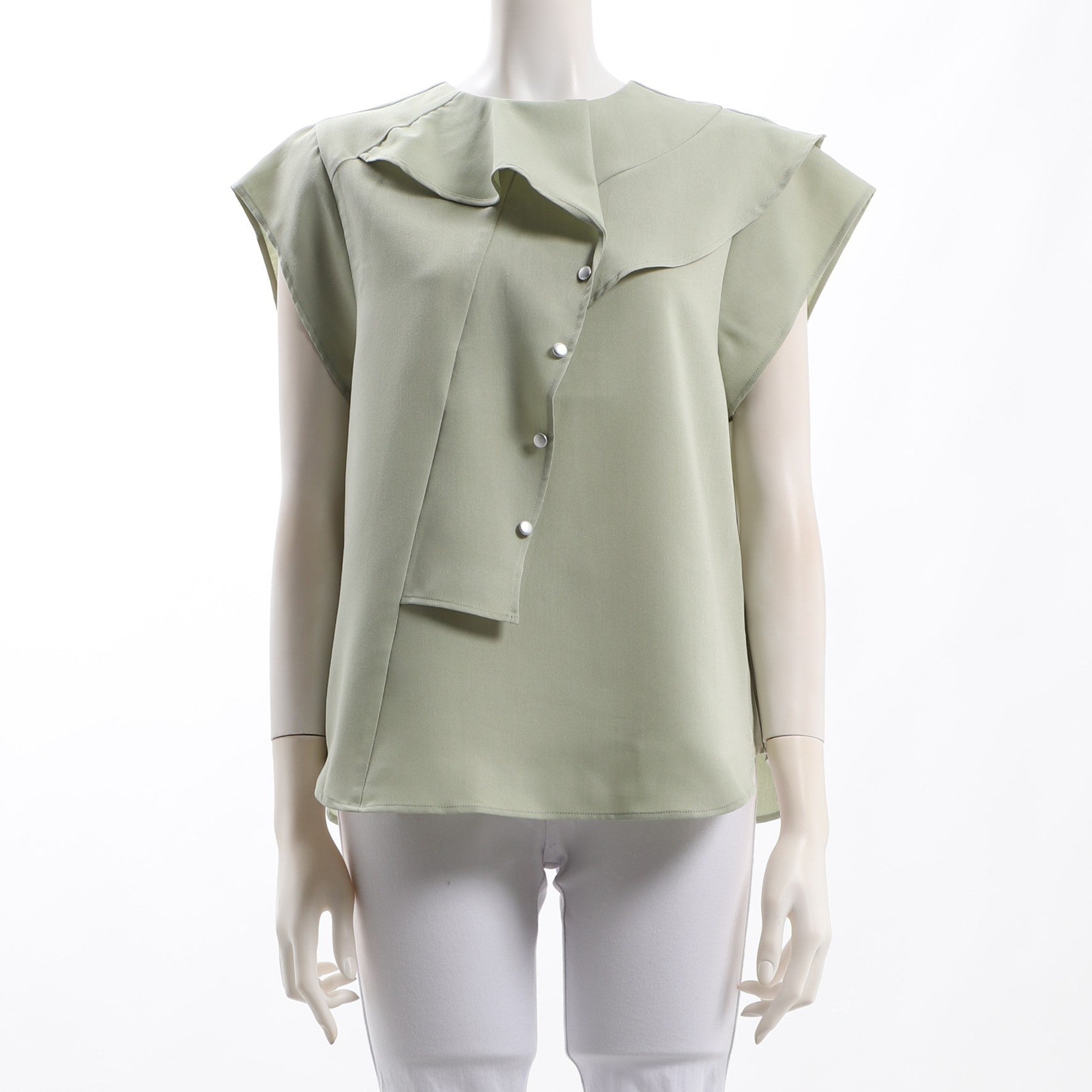 フリルデザインがポイントのアシンメトリーブラウスです。タイトスカートを合わせてレディライクスタイルに、デニムパンツを合わせてカジュアルダウンもいいですね。