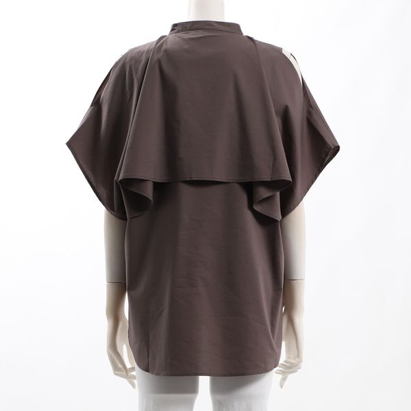 ケープデザインと肩のスリットが特徴的なブラウスです。フレアスカートとラウンドトゥパンプスを合わせてフェミニンスタイルや、ワイドパンツとポインテッドトゥパンプスを合わせてスタイリッシュスタイルもオススメですよ。