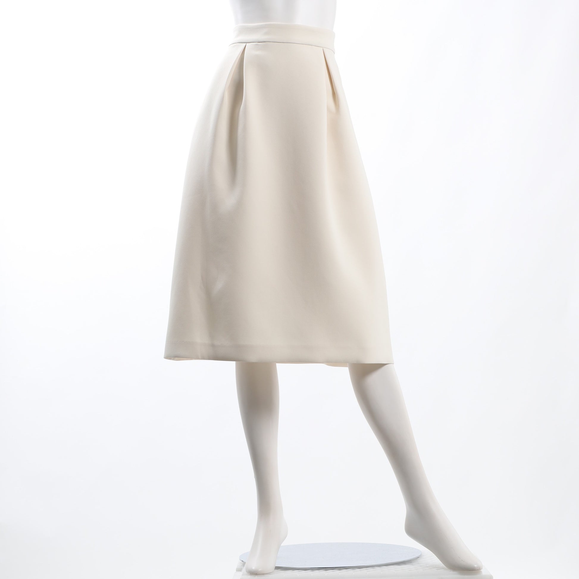 シンプルなタック入りフレアスカートです。ボウタイブラウスとパンプスを合わせて上品なスタイルや、カットソーとスニーカーを合わせてカジュアルスタイルのどちらも素敵ですよ。