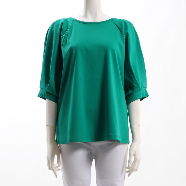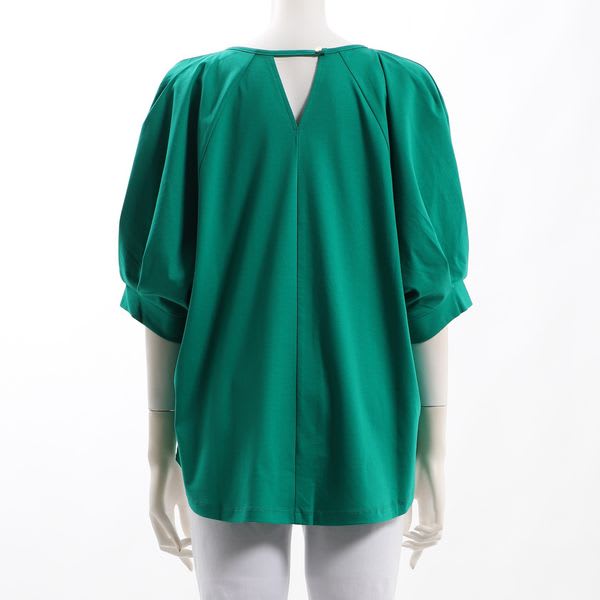 バックスタイルのカッティングが特徴的なラグランスリーブカットソー。タイトスカートを合わせてきれいめカジュアルスタイルに、デニムパンツを合わせてラフなスタイルもおすすめです。