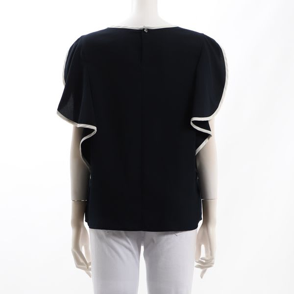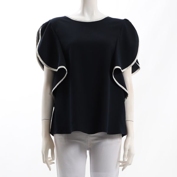 パイピングデザインのラッフルスリーブブラウスです。フレアスカートとパンプスを合わせてきれいめに、デニムパンツとスニーカーを合わせてカジュアルに仕上げても良いですね。