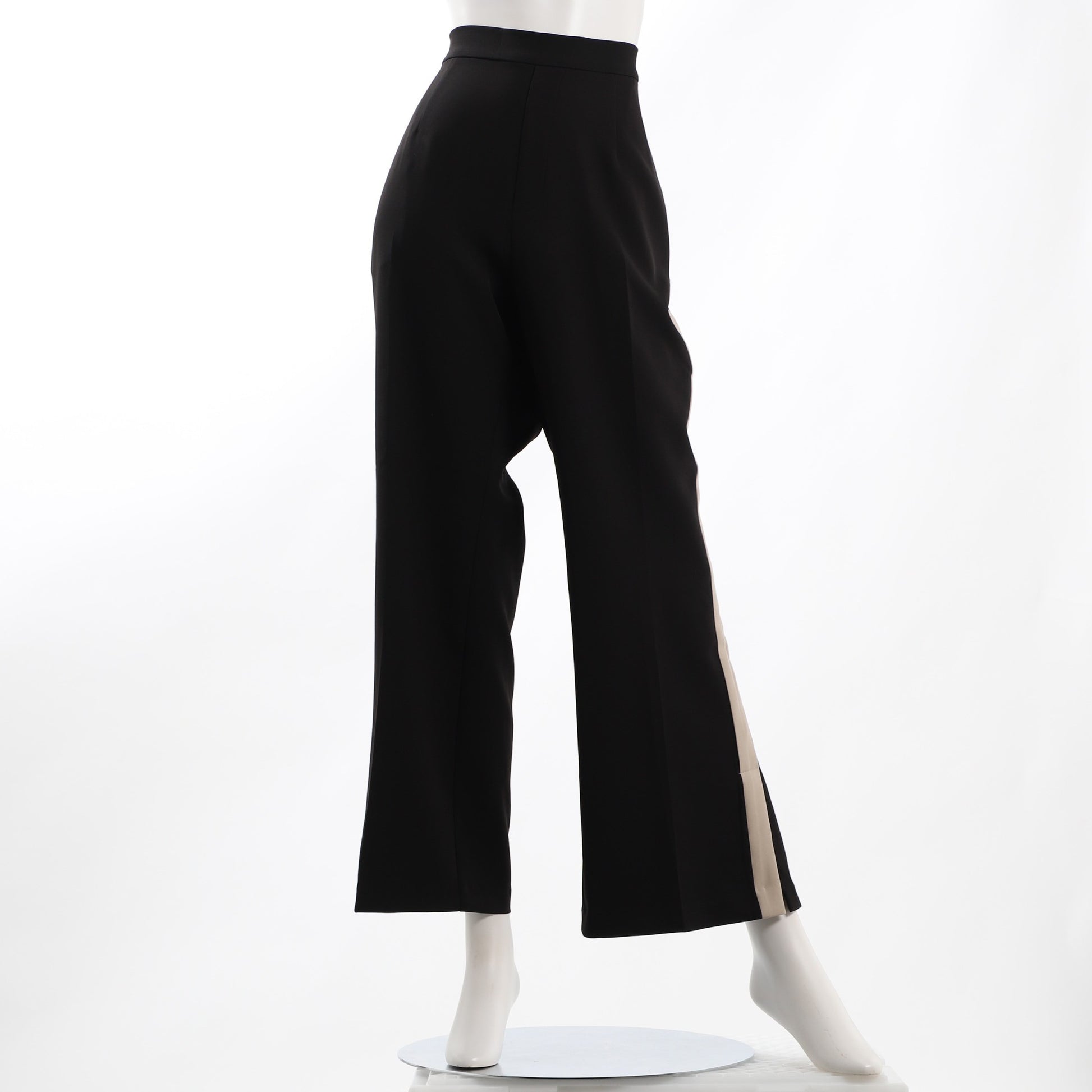 バイカラーデザインとサイドスリットがポイントとなったワイドパンツです。コットンシャツを合わせてクールなスタイルに、カットソーを合わせてカジュアルダウンしたスタイルも素敵ですよ。