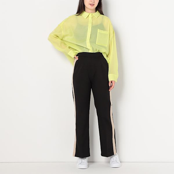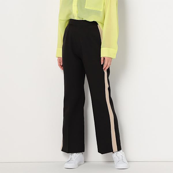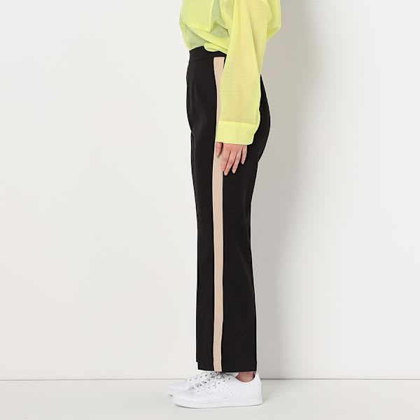バイカラーデザインとサイドスリットがポイントとなったワイドパンツです。コットンシャツを合わせてクールなスタイルに、カットソーを合わせてカジュアルダウンしたスタイルも素敵ですよ。