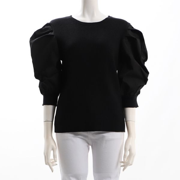 ボリュームのある袖がポイントのニットです。ワイドパンツとスニーカーを合わせてカジュアルスタイルに、マーメイドスカートとラウンドパンプスを合わせてフェミニンスタイルもいいですね。