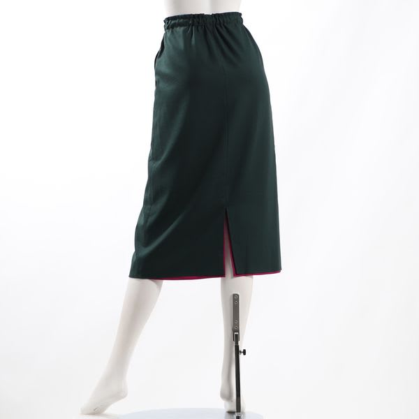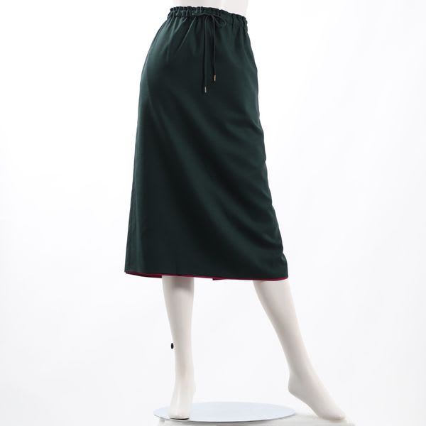 ストレッチリバーシブルセミタイトスカート。トップスにはシャツを合わせてキレイめに、クルーネックカットソーでカジュアルに仕上げてもいいですね。