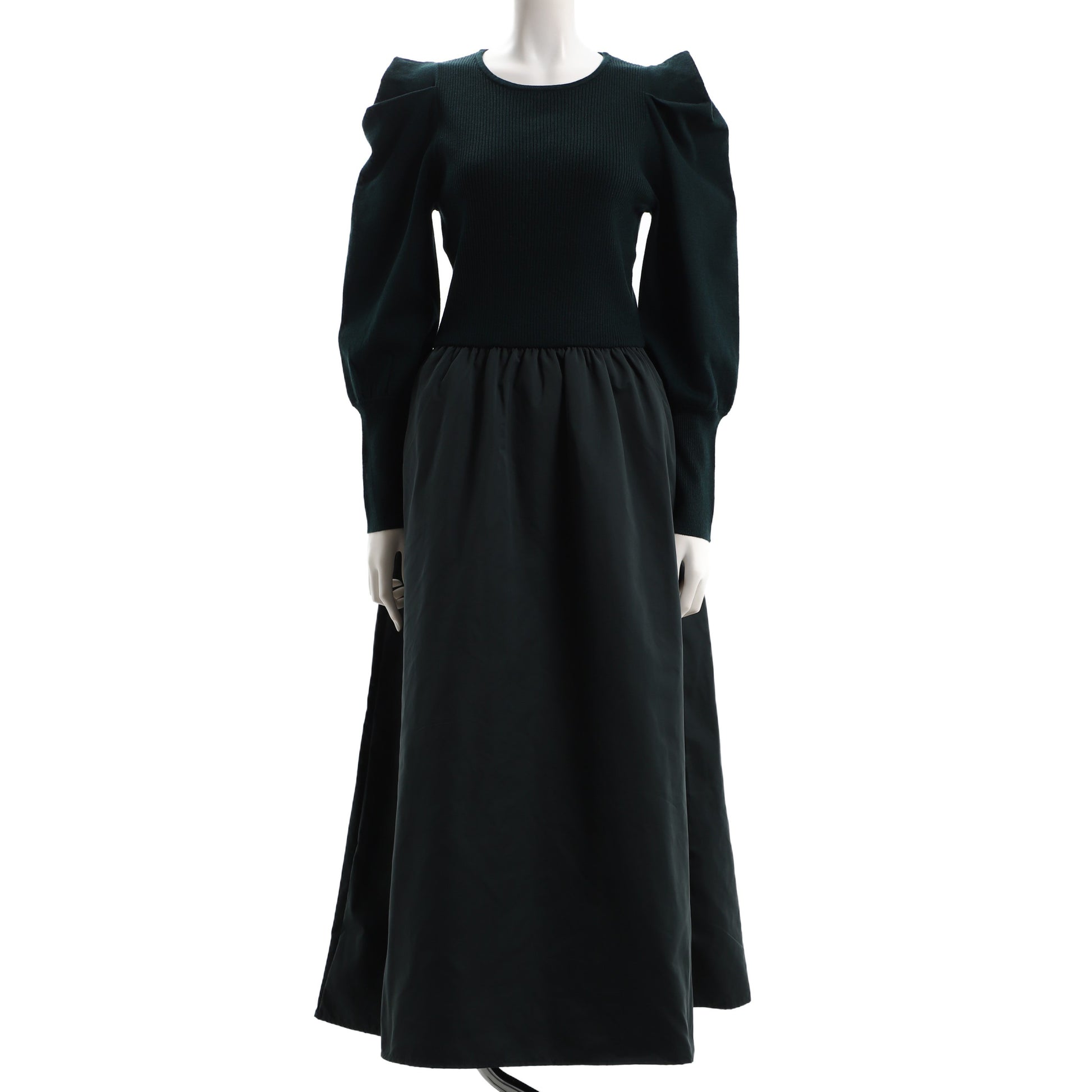 異素材切替のボリュームスリーブワンピースです。パテントパンプスを合わせてエレガントに、ビットローファーを合わせてクラシカルに仕上げても良いですね。