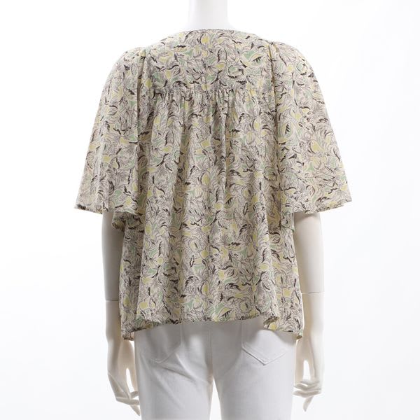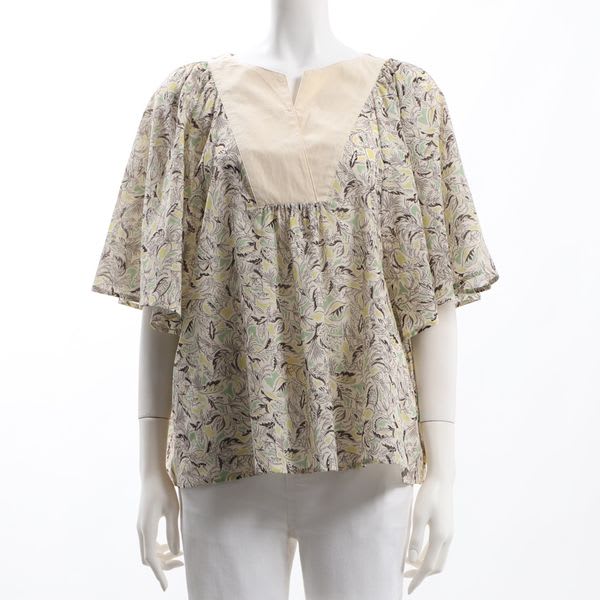ボタニカル柄オープンフロントネックブラウス