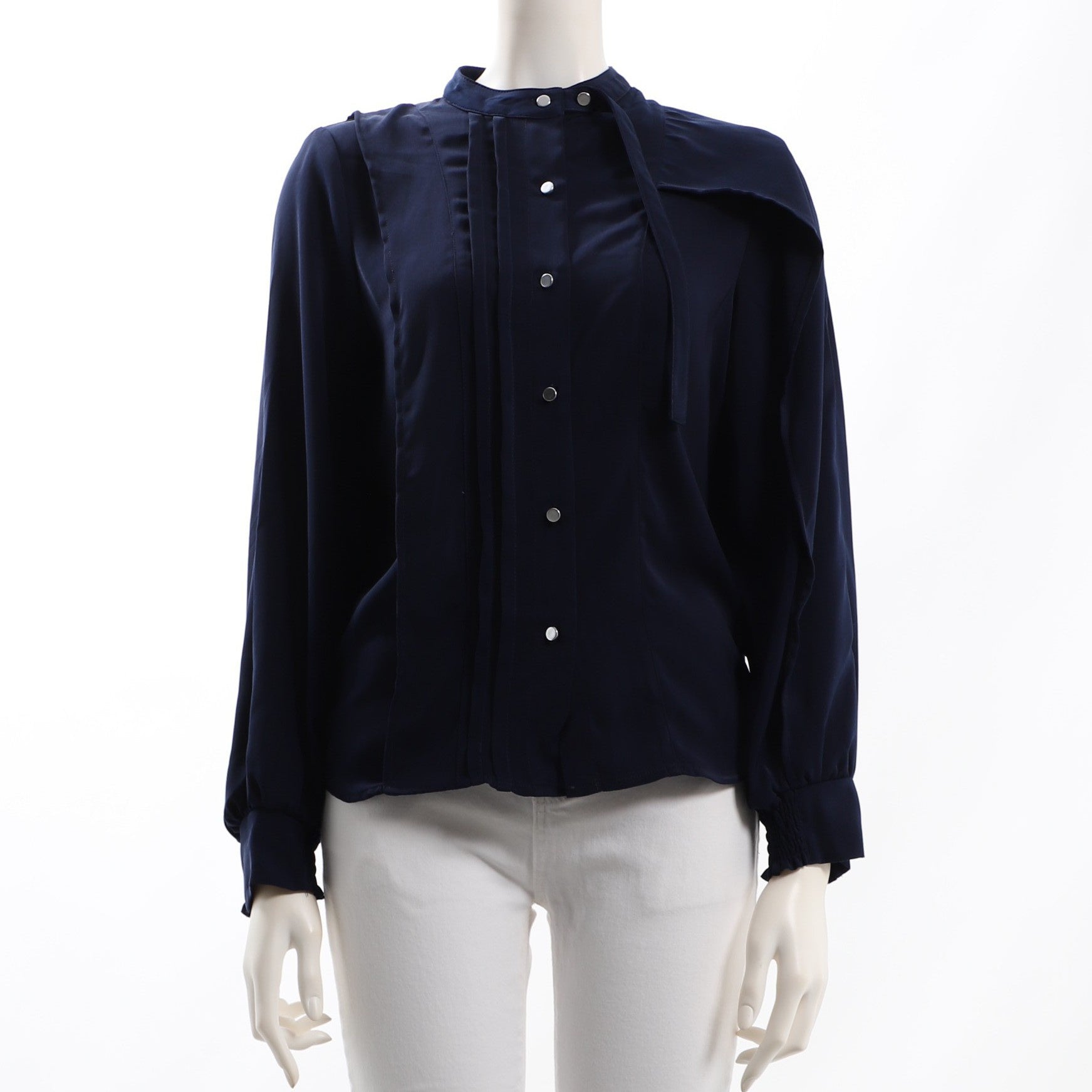 「落ち着いたきちんとした感じで、通勤にも着れました。紺色は好きなので良かったです。襟元の紐は下に垂らして着ましたが、それでいいのか分かりません。」