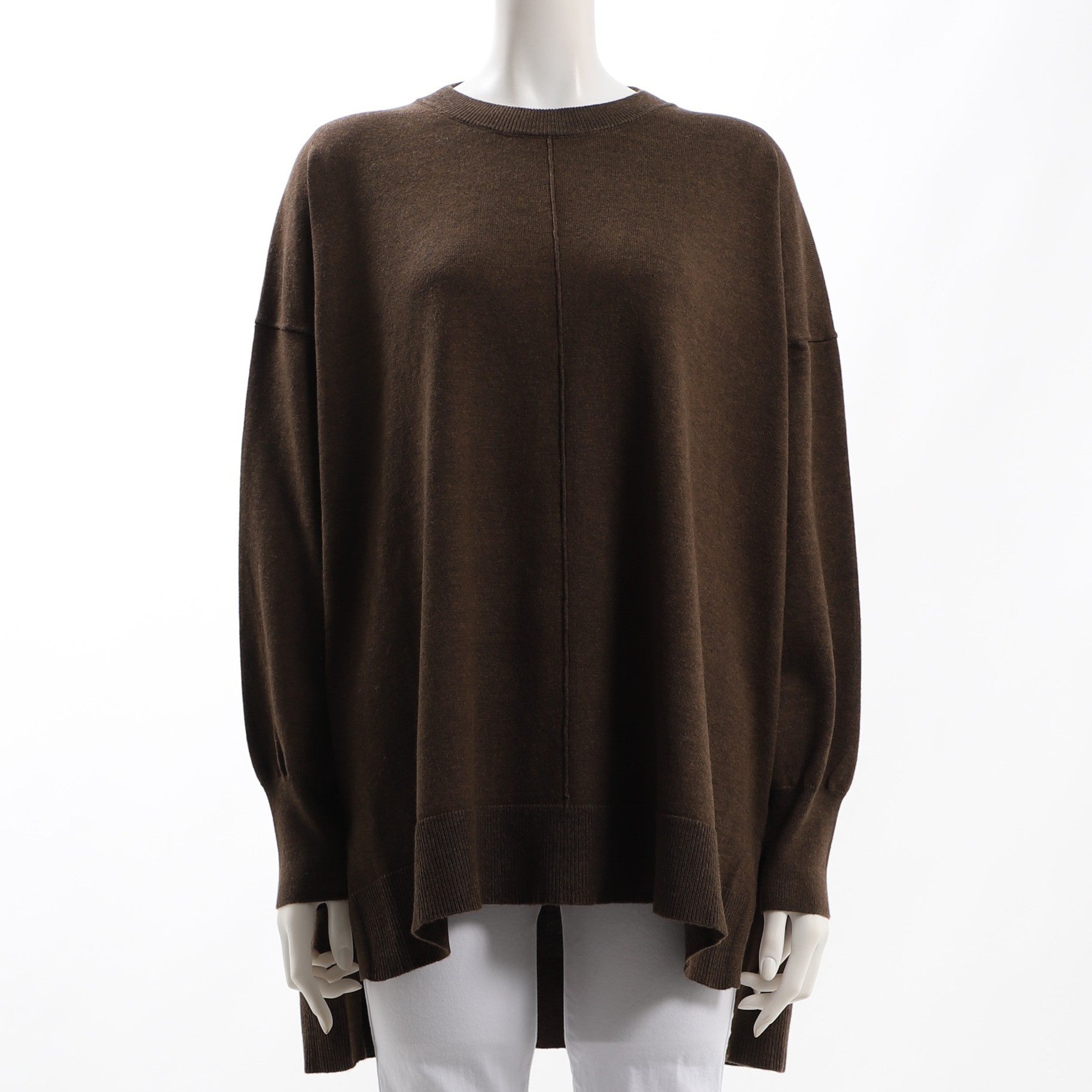 フロントのシームデザインが特徴のドロップショルダーニットです。ナロースカートを合わせてレディなスタイルに、ストレートパンツを合わせてマニッシュなスタイルに仕上げても良いですね。