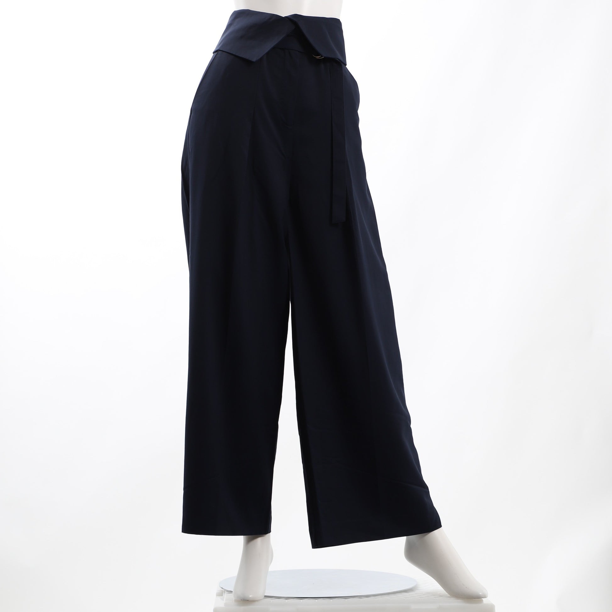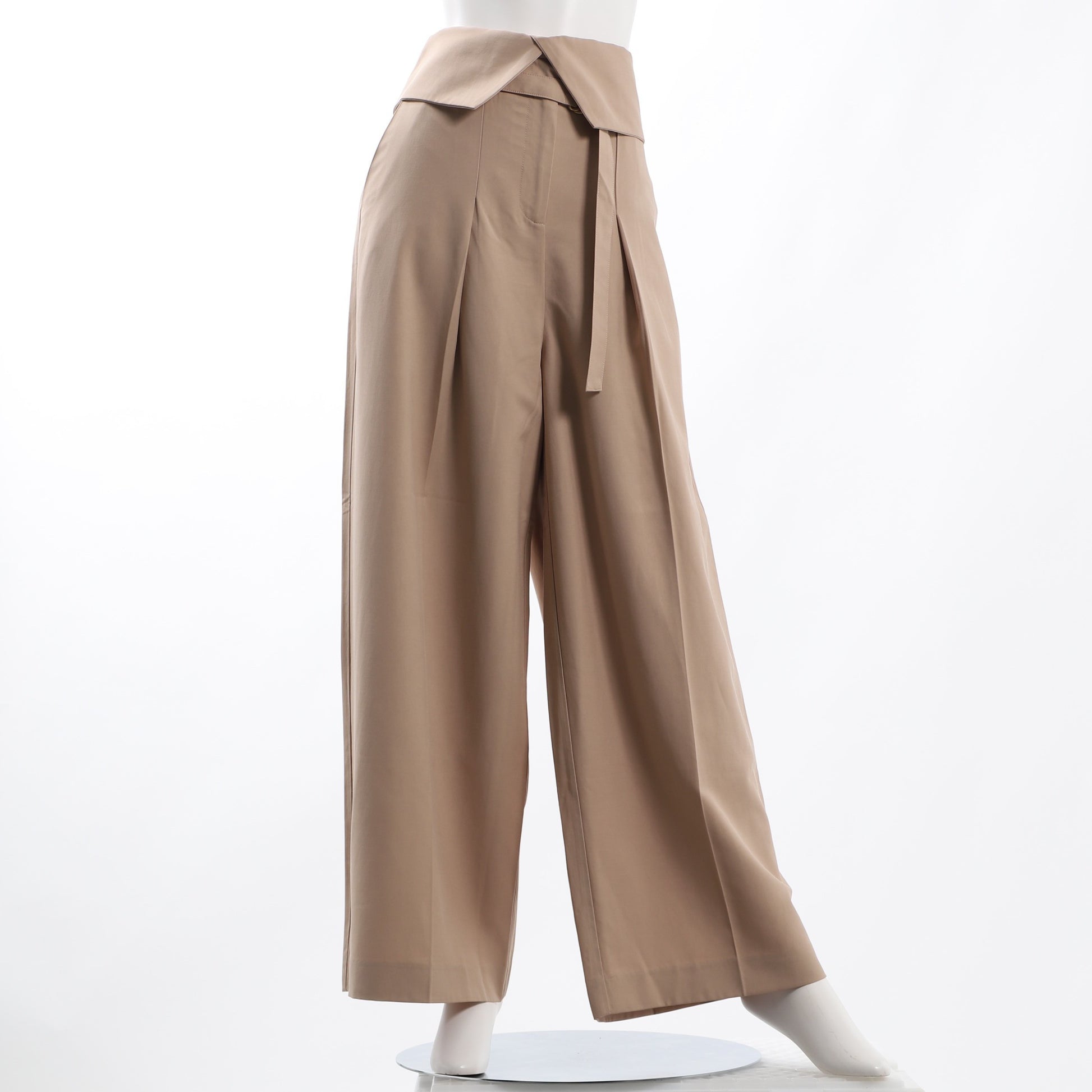 ウエストの折り返しデザインがポイントのワイドパンツ。トップスにはコットンカットソーを合わせてラフな印象に、ラウンドネックブラウスでキレイめカジュアルにまとめてもいいですね。
