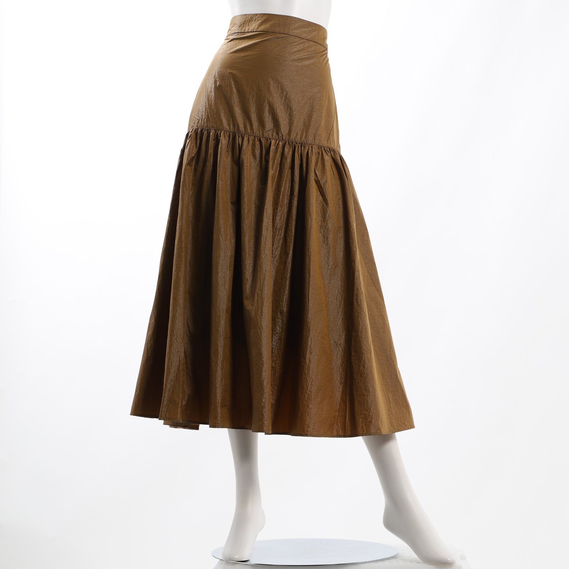 切替ギャザーがポイントのスカートです。フリルブラウスにバレエシューズを合わせて、女性らしく。カットソーにスニーカーを合わせて、カジュアルに着こなしてもステキですね。