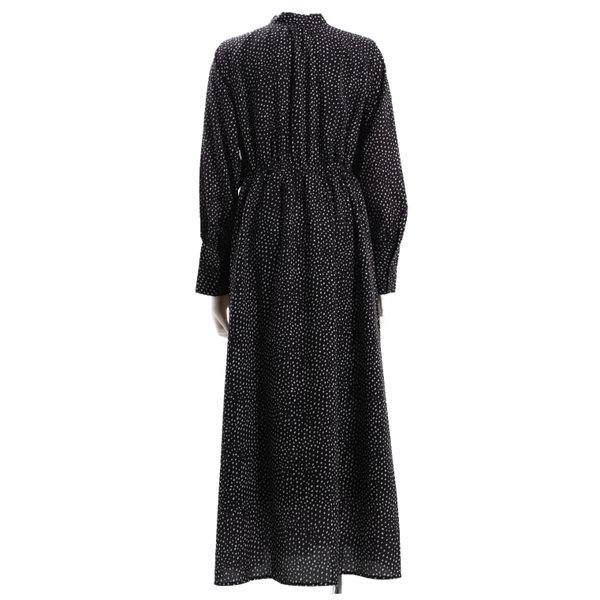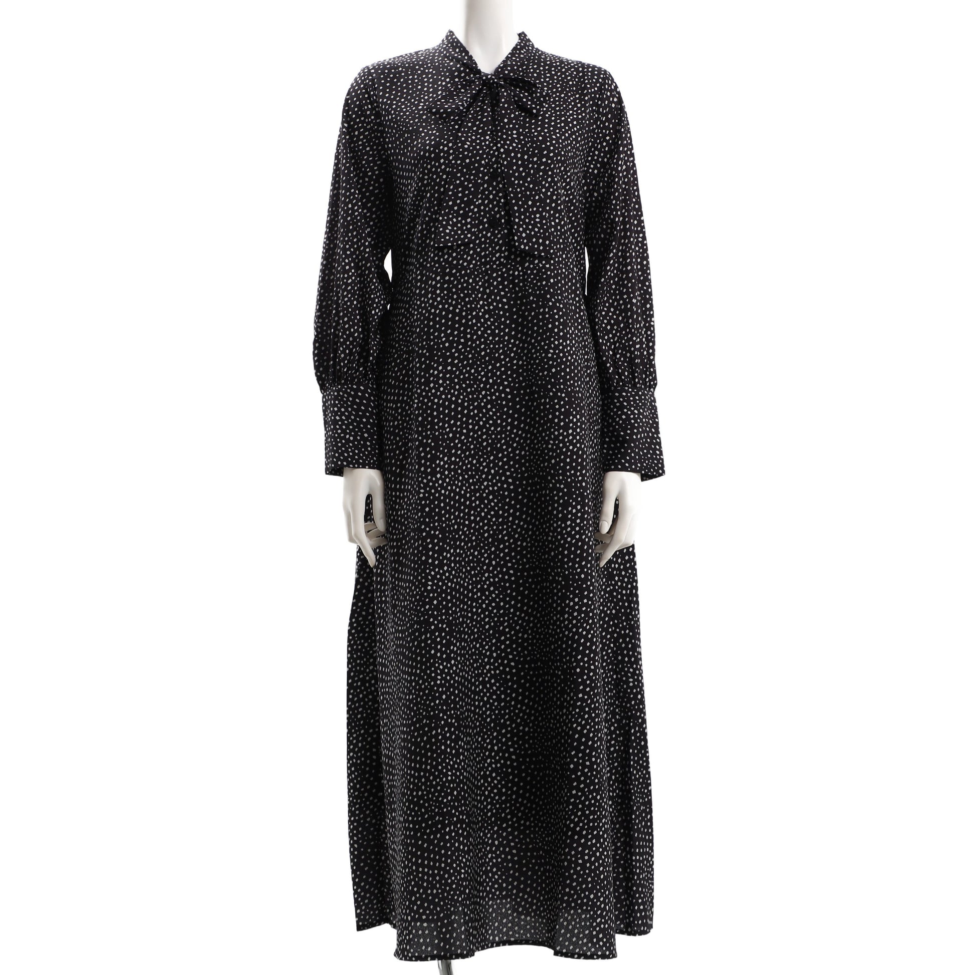 総柄のボウタイワンピースです。エナメルパンプスとチェーンバッグでレディライクスタイルや、ラウンドトゥパンプスとバックル付きハンドバッグで品のあるスタイルもオススメですよ。