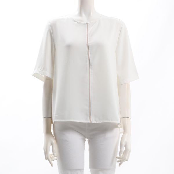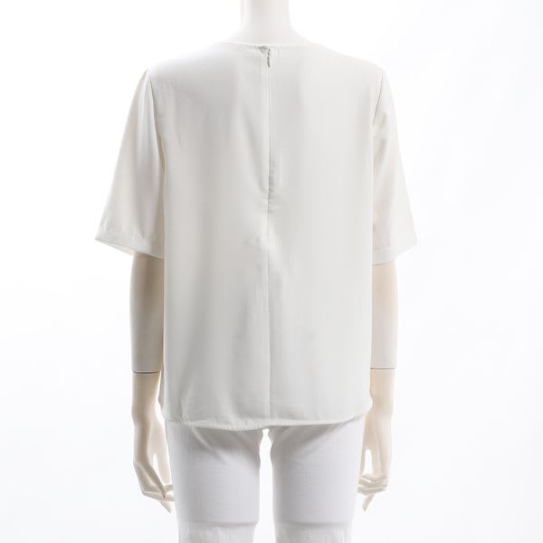 フロントのラインがポイントのクルーネックブラウスです。タイトスカートを合わせて女性らしく、デニムパンツを合わせてカジュアルダウンしたスタイルも素敵ですよ。