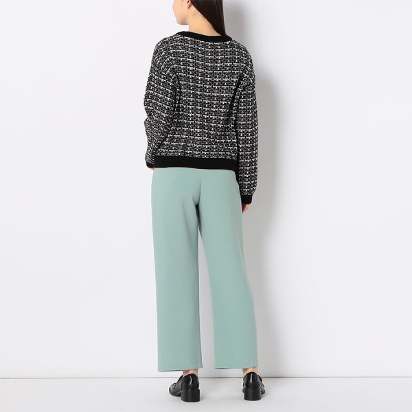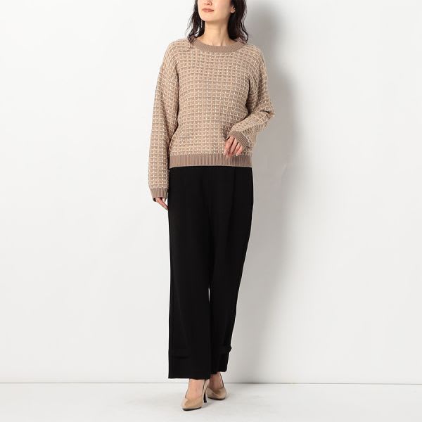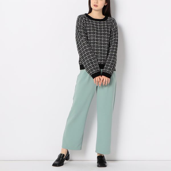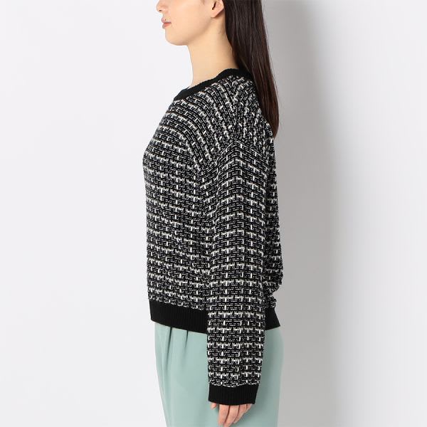 ドロップショルダーのツイードニット。タイトスカートを合わせて上品な着こなしに、テーパードパンツを合わせてスマートに着こなすのもおすすめです。