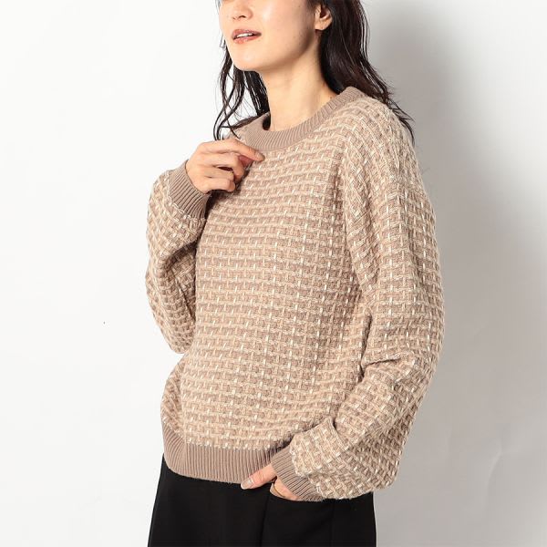 ドロップショルダーのツイードニット