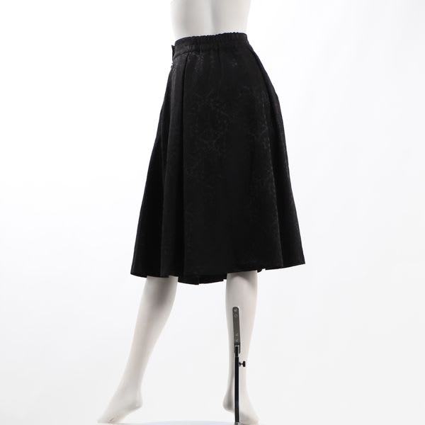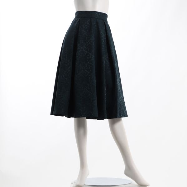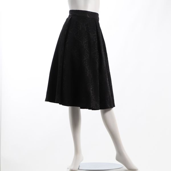 総柄のタックフレアスカート。トップスにはギャザーネックブラウスを合わせてフェミニンに、ハイゲージニットでキレイめカジュアルに仕上げてもいいですね。