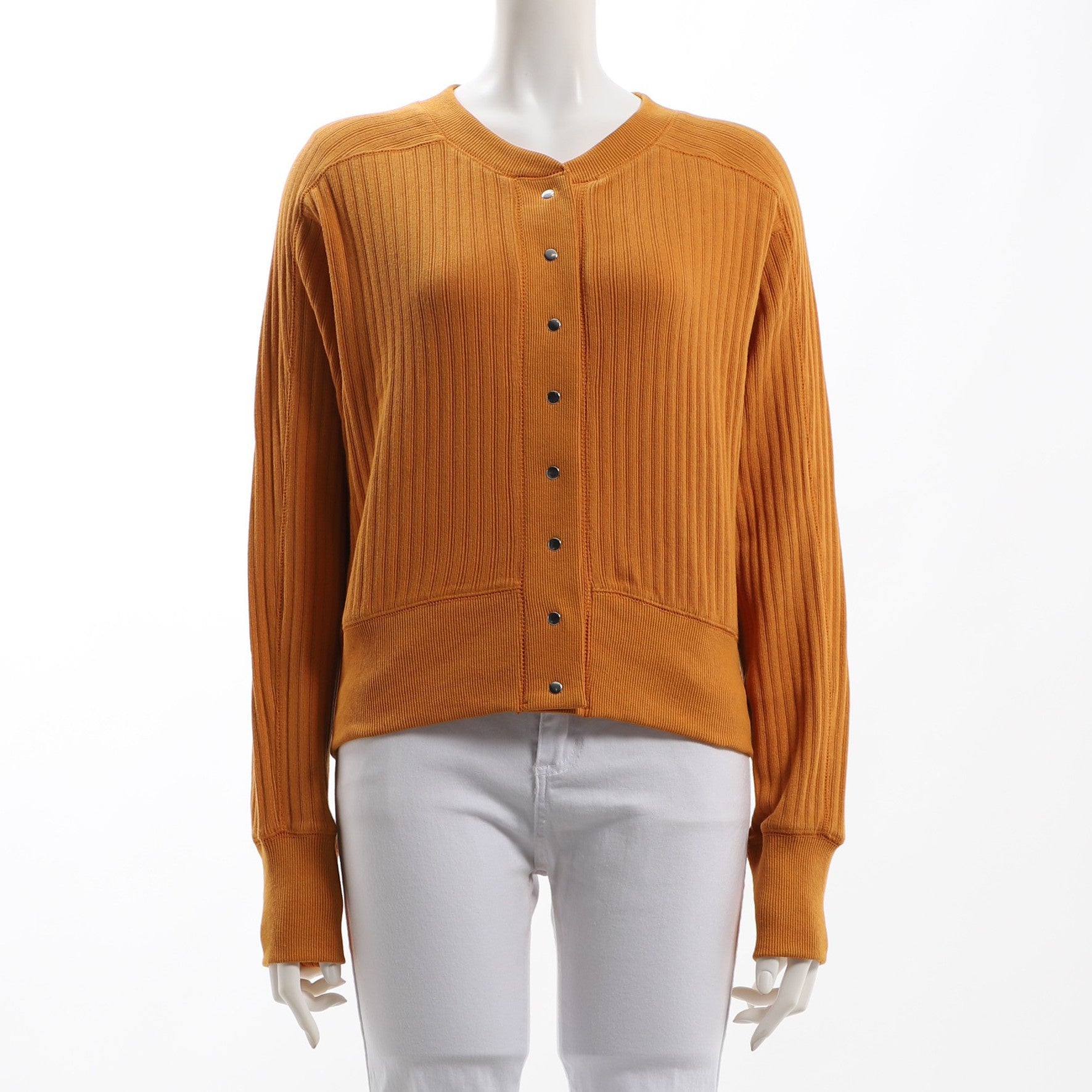 小ぶりのメタリックなボタンが特徴のドルマンスリーブカーディガンです。ボタンを留めて一枚のプルオーバーとしてフレアスカートと合わせると、きれいめなスタイルに。前を開けてカットソーの軽く羽織ってデニムパンツなどを合わせると、カジュアルなスタイルに仕上がります。