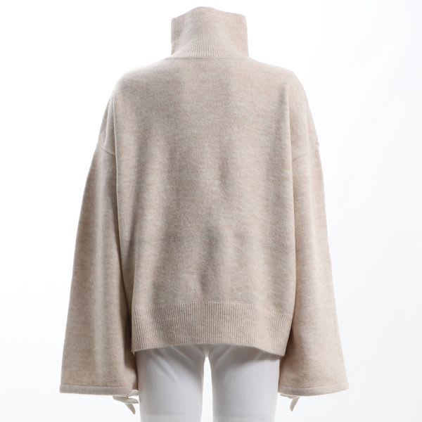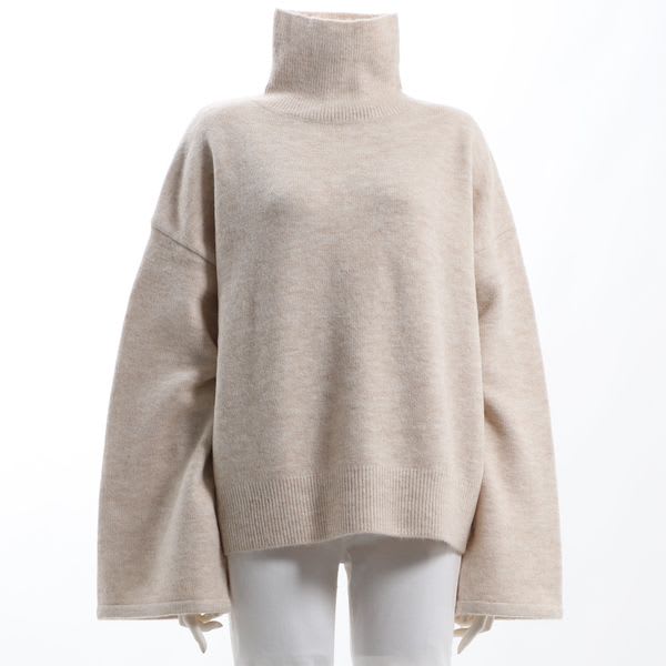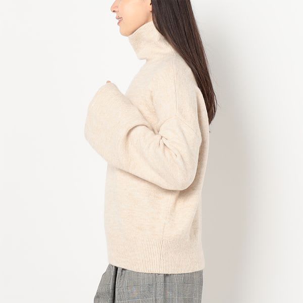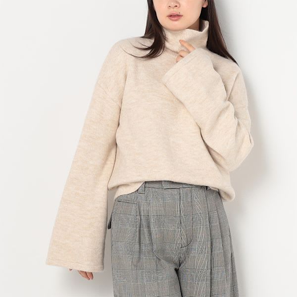 ドロップショルダーとワイドスリーブでゆったりと着られるニット。デニムパンツを合わせてラフな着こなしに、ギャザースカートを合わせてゆったりと着こなすのもおすすめです。