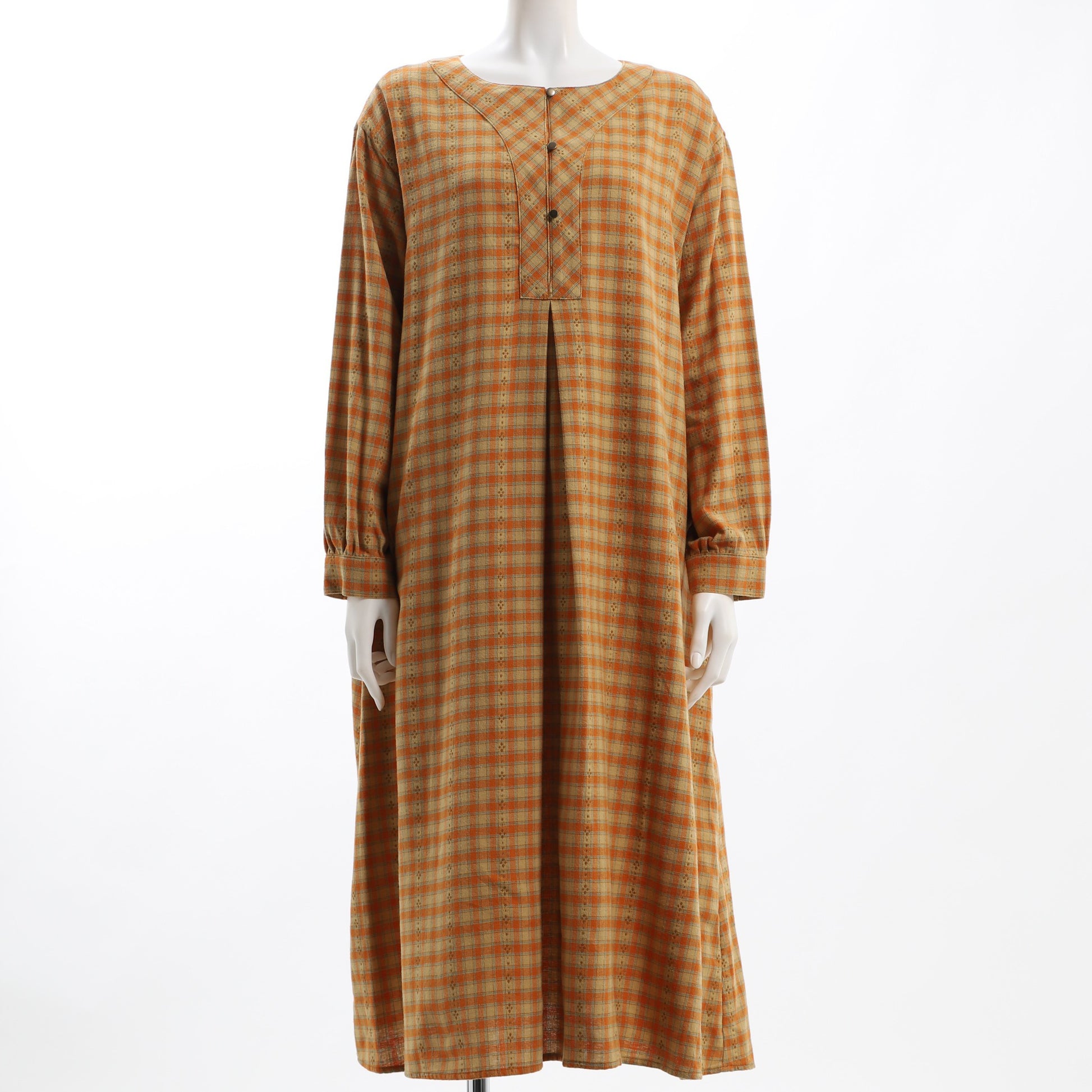 フロントボタンがポイントのチェック柄ワンピースです。