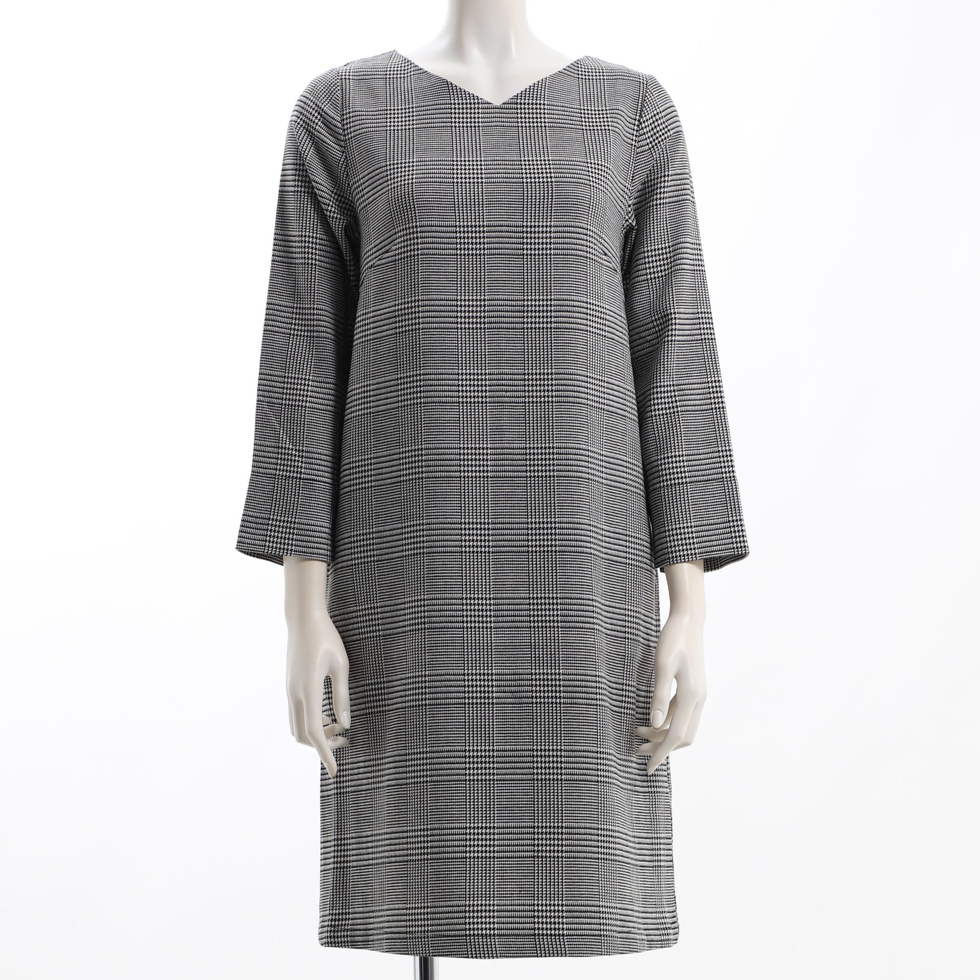グレンチェック柄のVネックワンピース。レザーのハンドバッグとポインテッドトゥパンプスを合わせてきれいめに、ファーバッグとローファーパンプスを合わせてフェミニンに着こなすのもおすすめです。