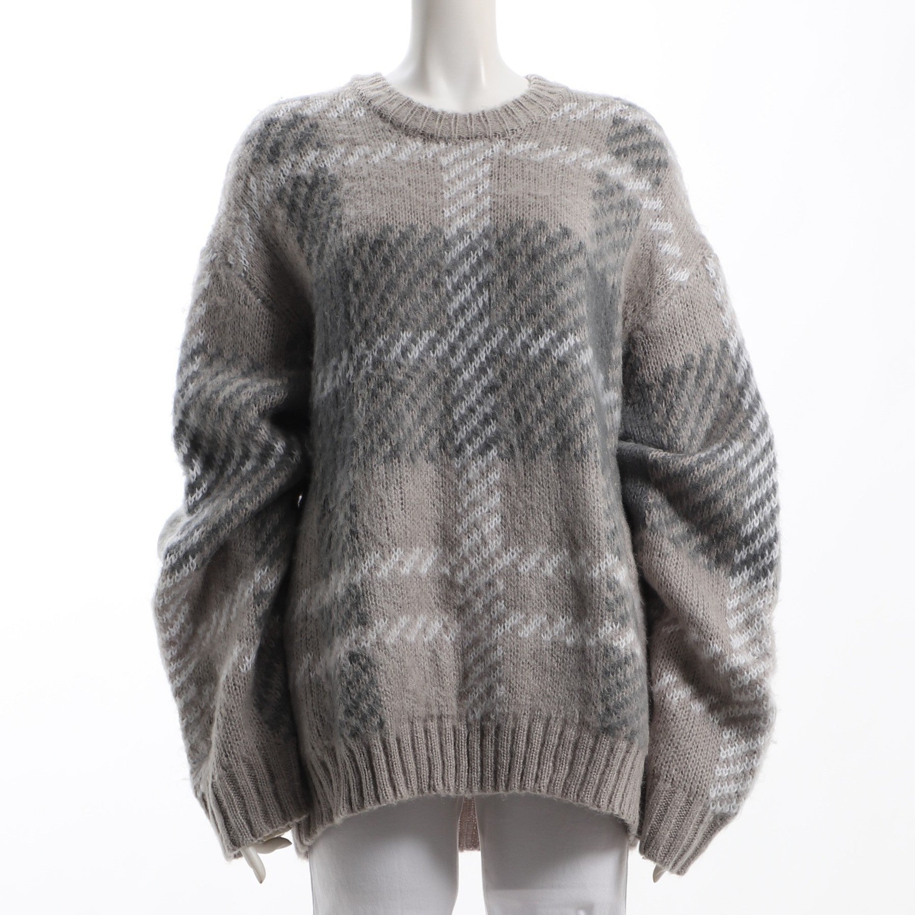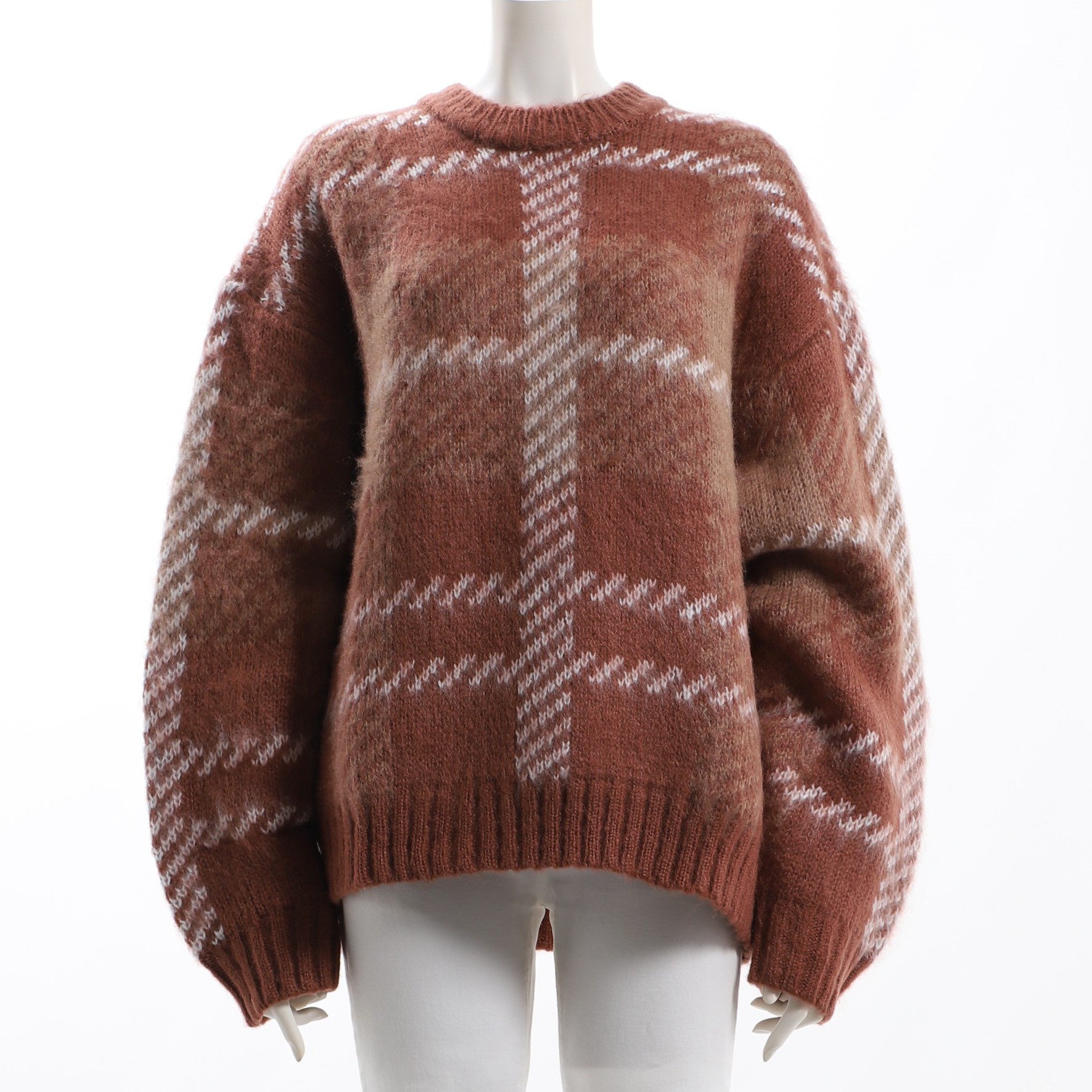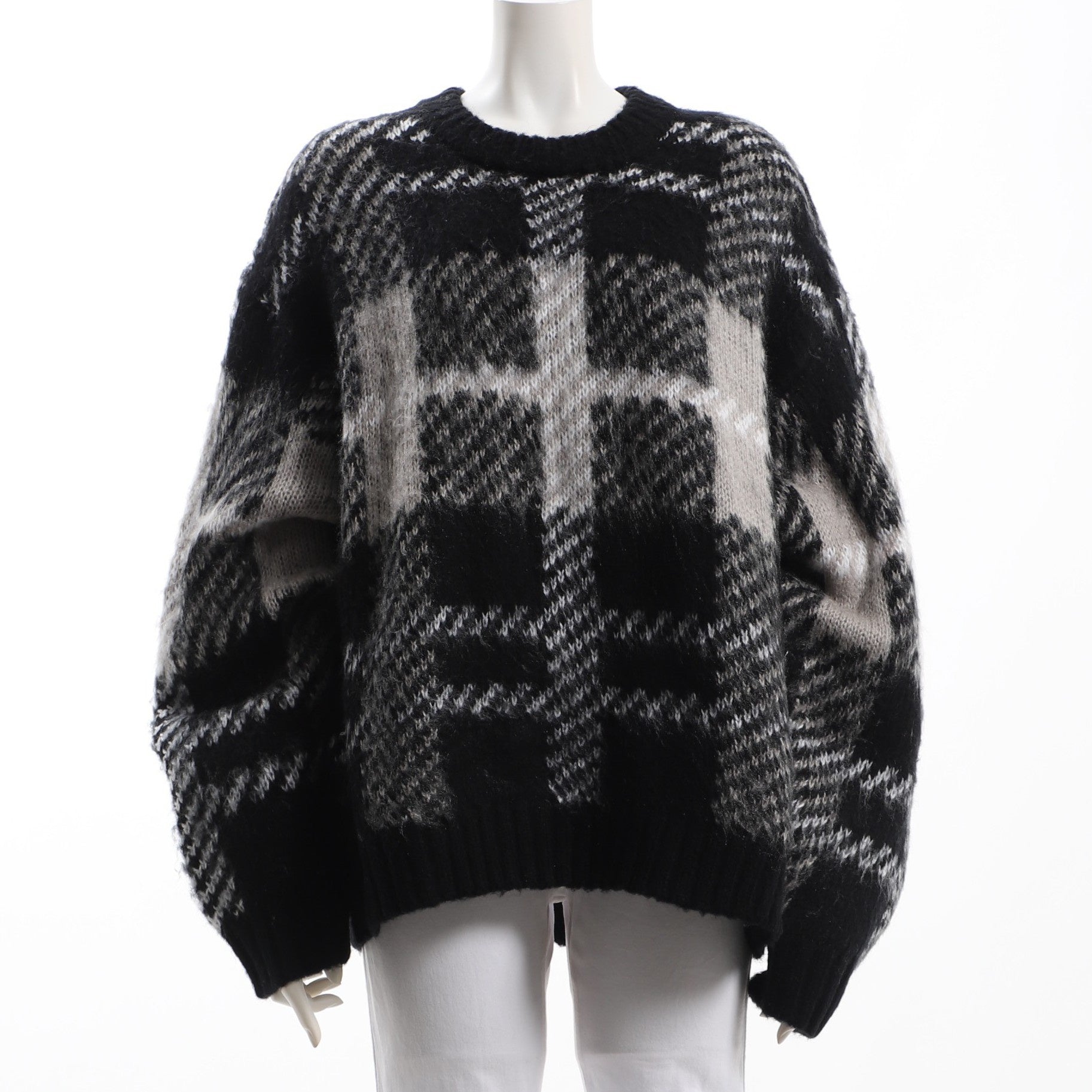 大きめチェック柄ボリュームニット
