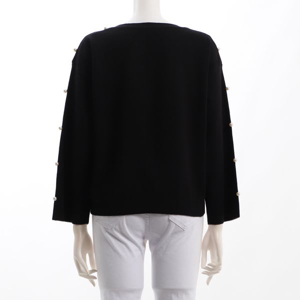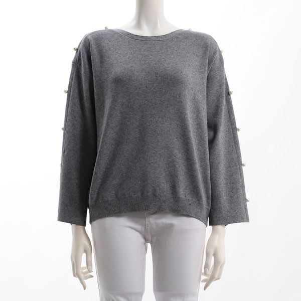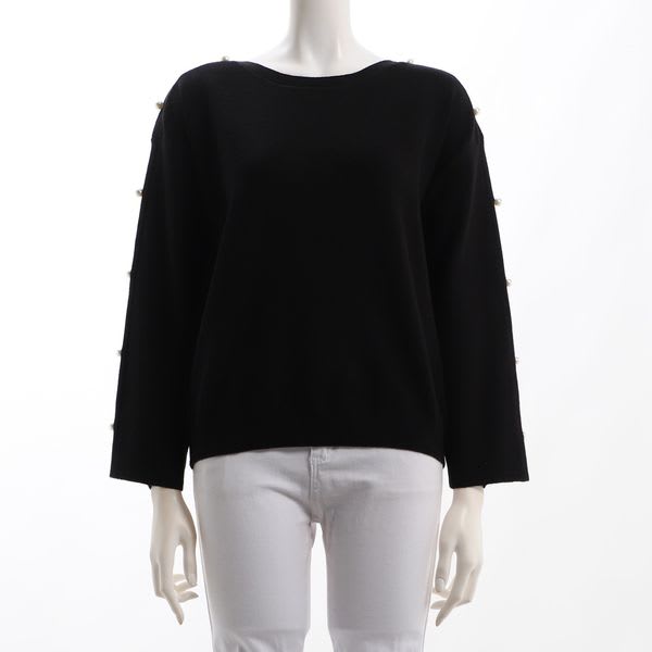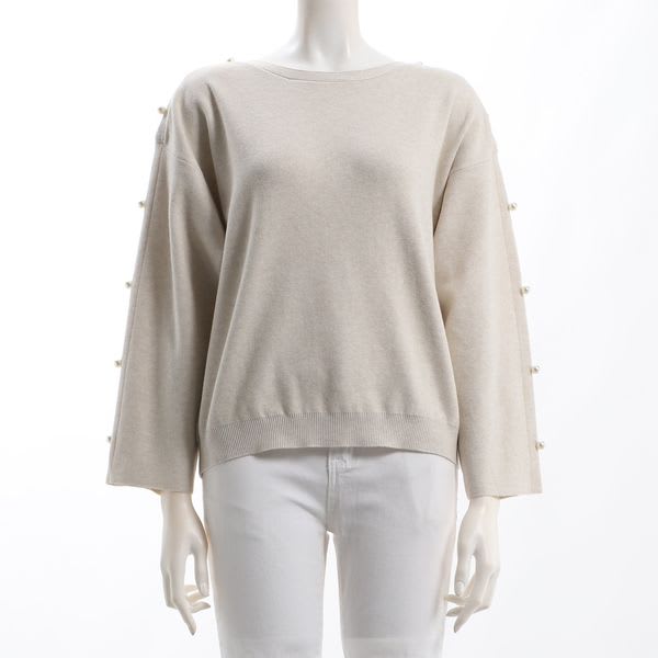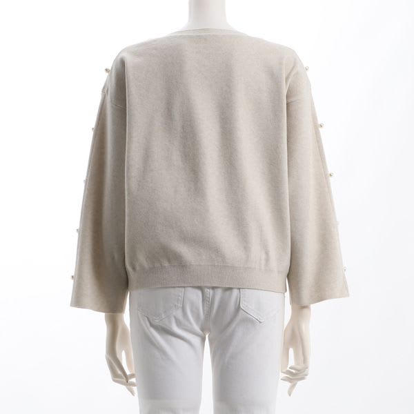 サイドパールスリーブニットです。デニムパンツにバレエシューズを合わせて、カジュアルに。フレアスカートにラウンドトゥパンプスを合わせて、女性らしく着こなしてもステキですね。
