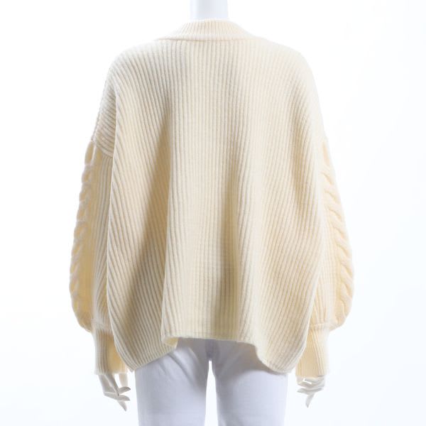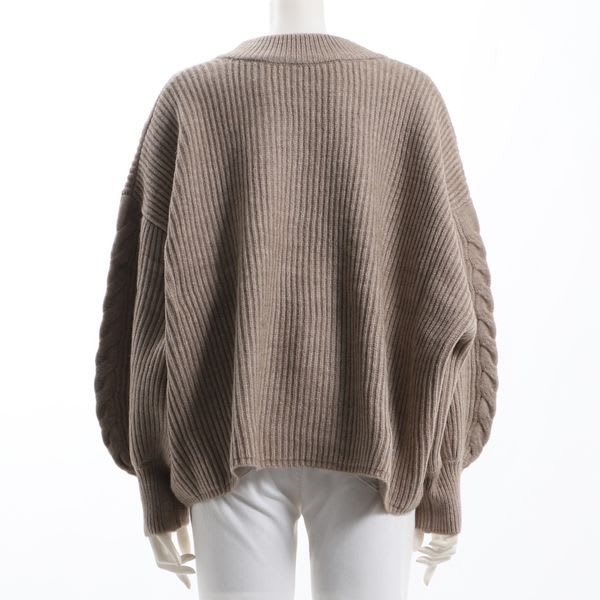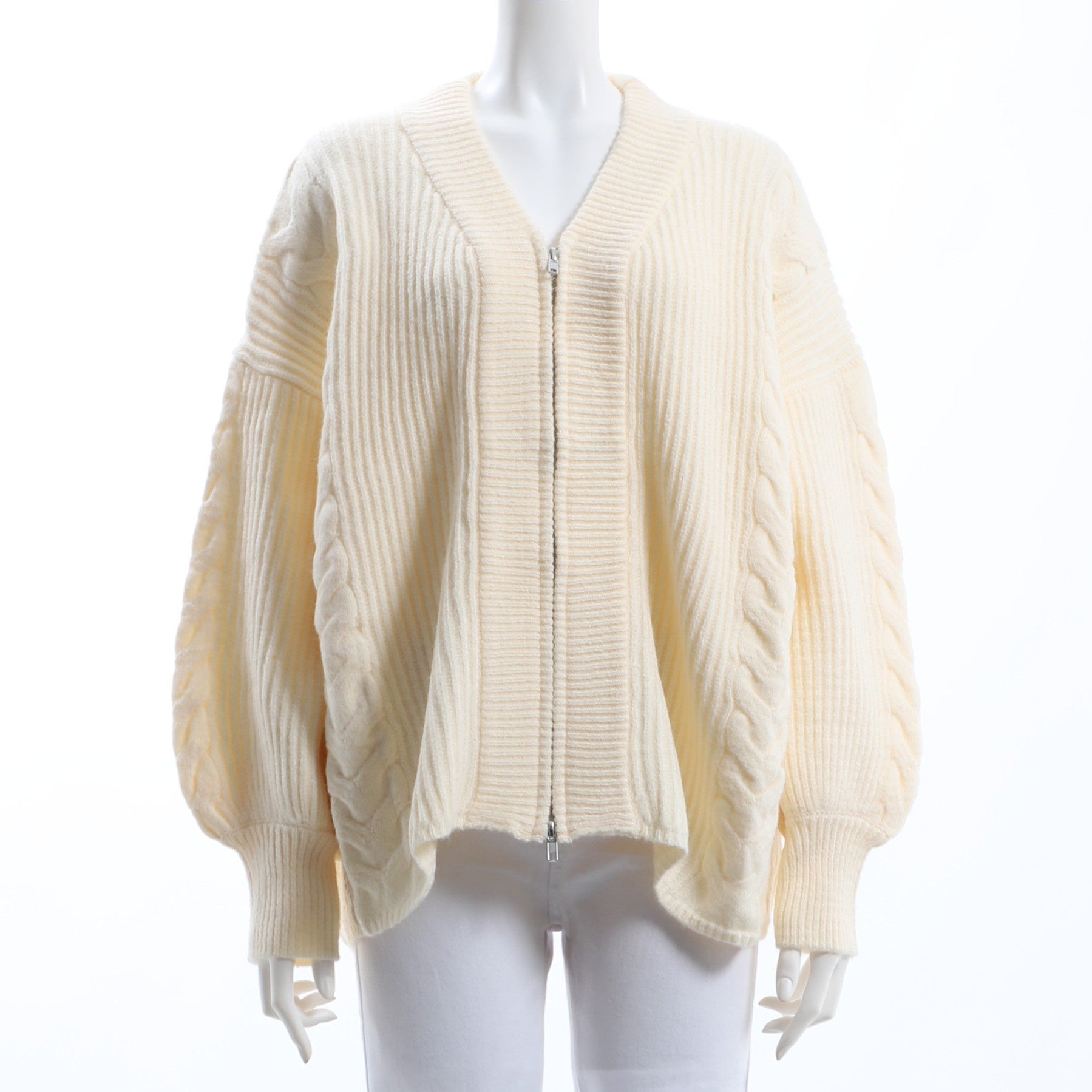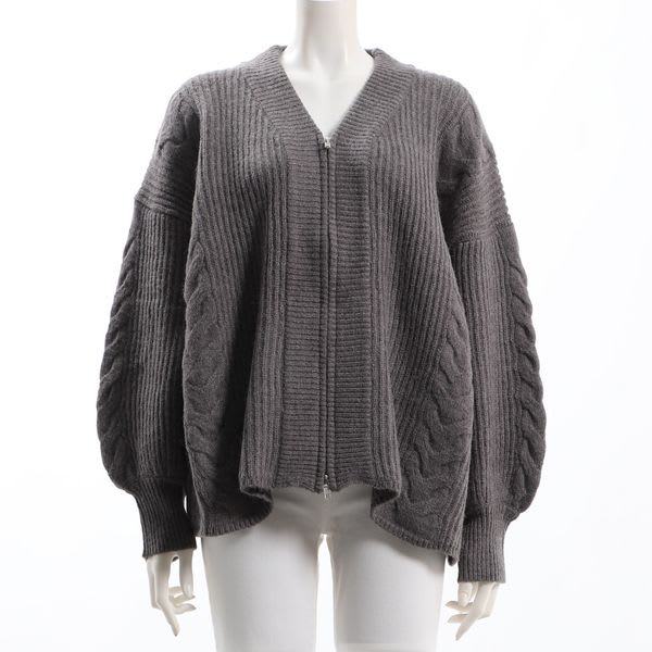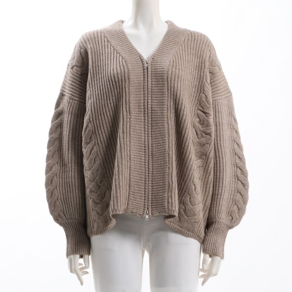 編み柄がポイントのジップカーディガン。ボトムスにはデニムパンツを合わせてカジュアルに、プリーツスカートでフェミニンにまとめてもいいですね。