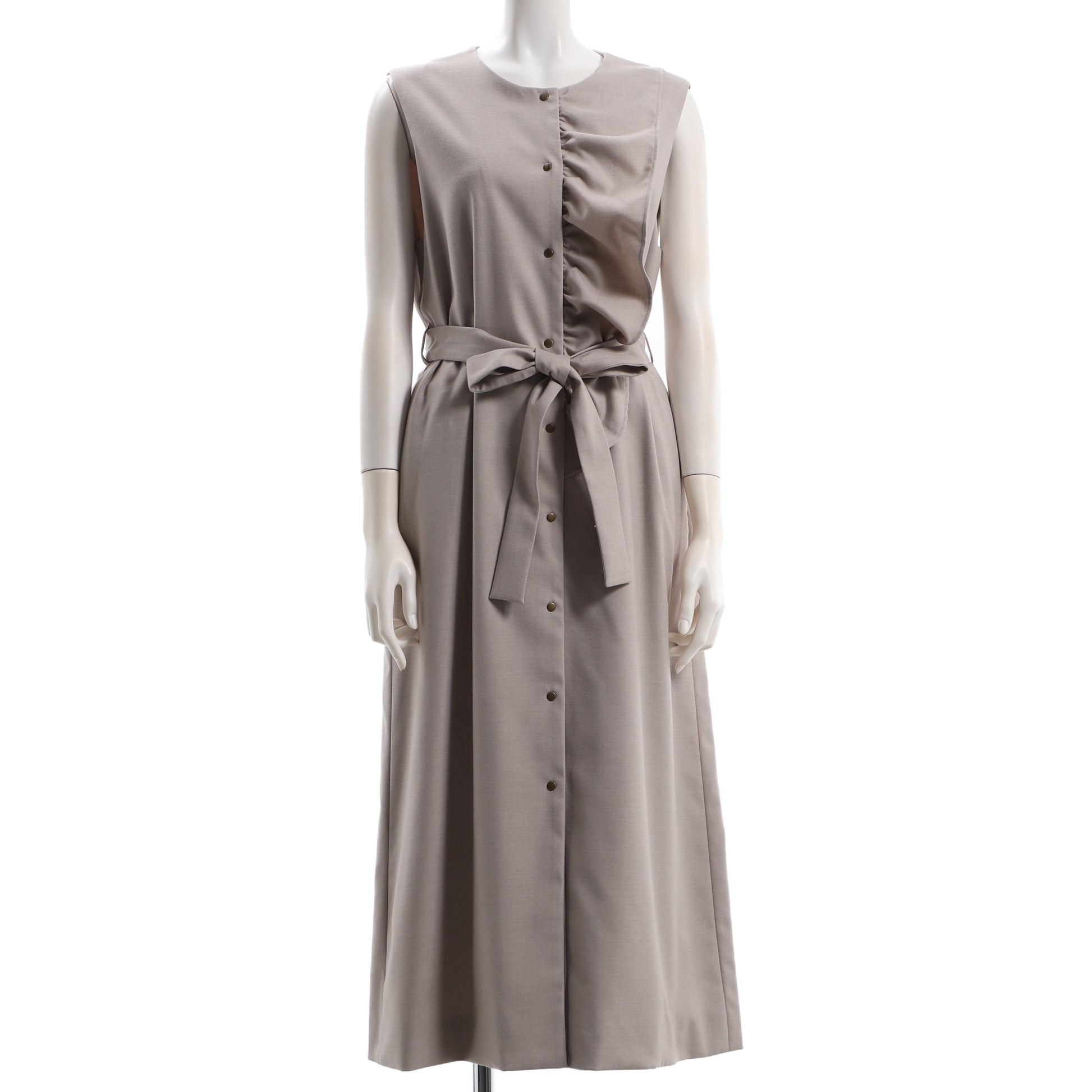 フロント部分のフリルが華やかな印象のワンピースです。インナーにリブニットなどを合わせて、きれいめカジュアルなスタイルに。インナーにふんわりとしたお袖のブラウスを合わせて、女性らしい着こなしもいいですね。