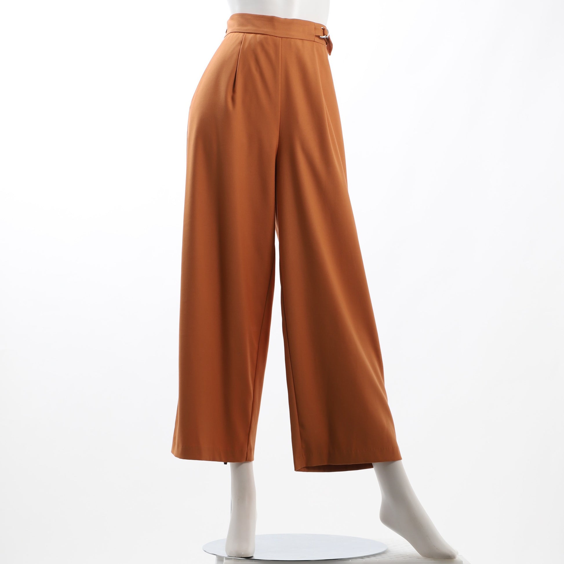 Dカンベルト付きのタック入りワイドパンツ。フレアスリーブブラウスを合わせてきれいめカジュアルに、ローゲージニットを合わせてラフに着てもいいですね。