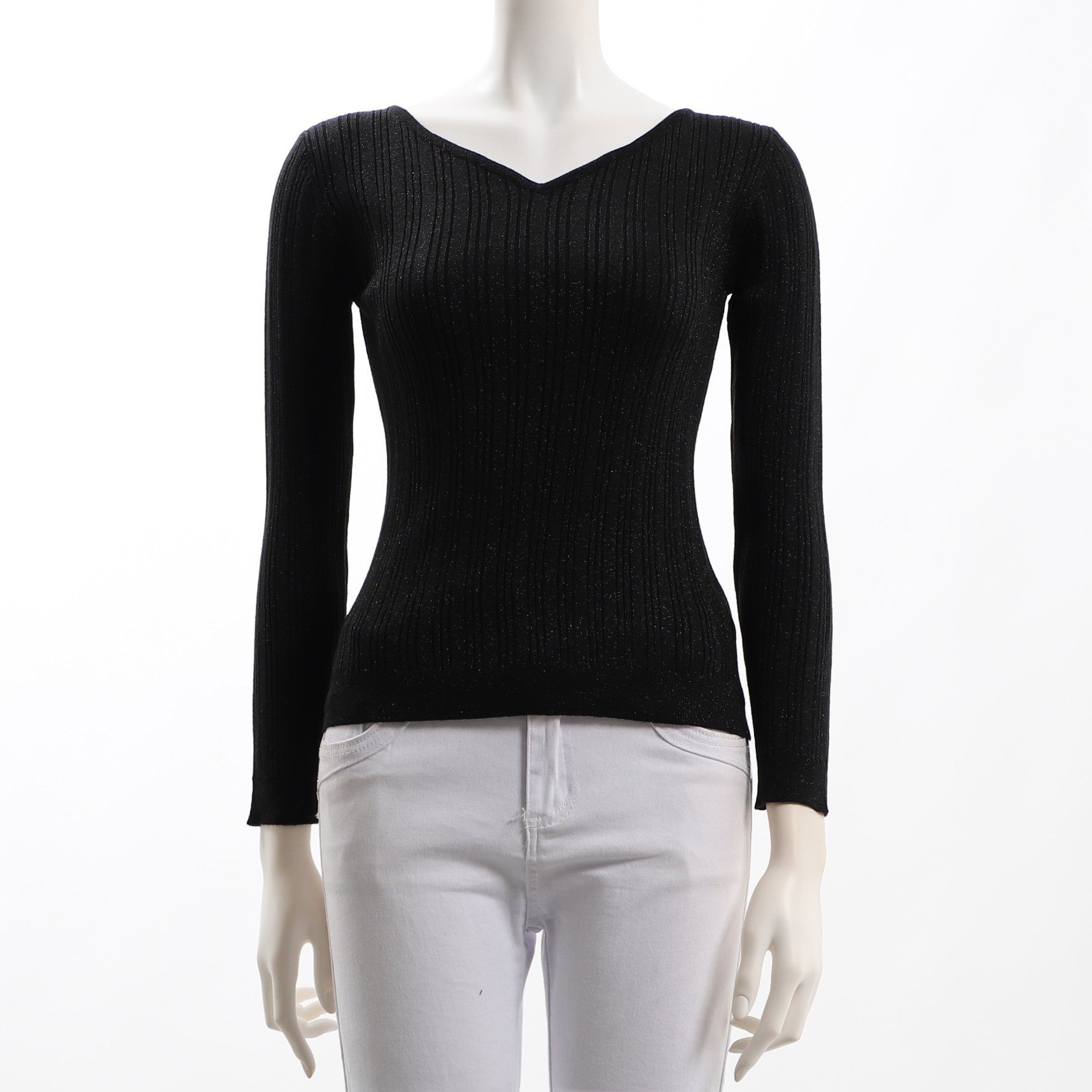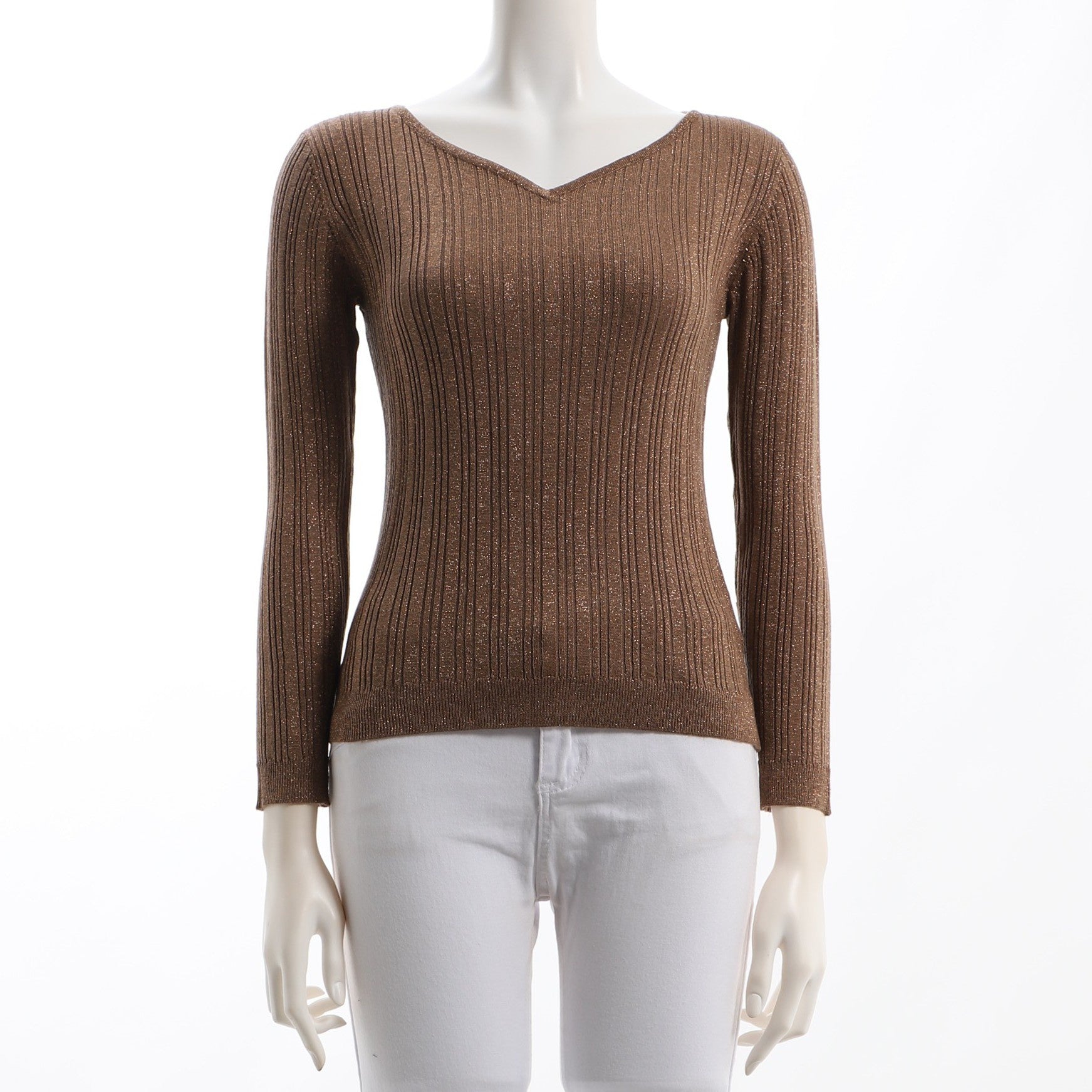 ラメ入りのリブニットです。Aラインスカートにバレエシューズで大人フェミニンな着こなしに。ワイドパンツにポインテッドトゥパンプスでスタイリッシュなコーディネートも◎