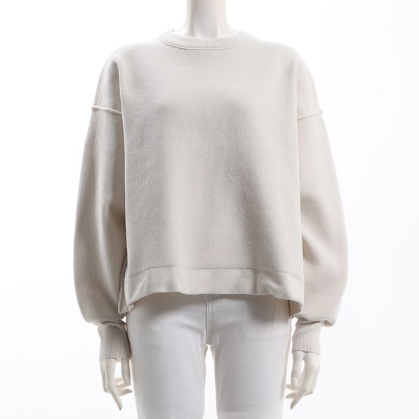 ボリュームスリーブのドロップショルダーニットです。タックパンツとローファーを合わせてきれいめに、デニムパンツとスニーカーを合わせてカジュアルに仕上げても良いですね。