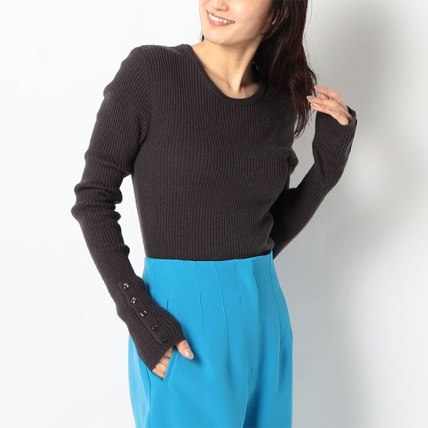 クルーネックリブニット