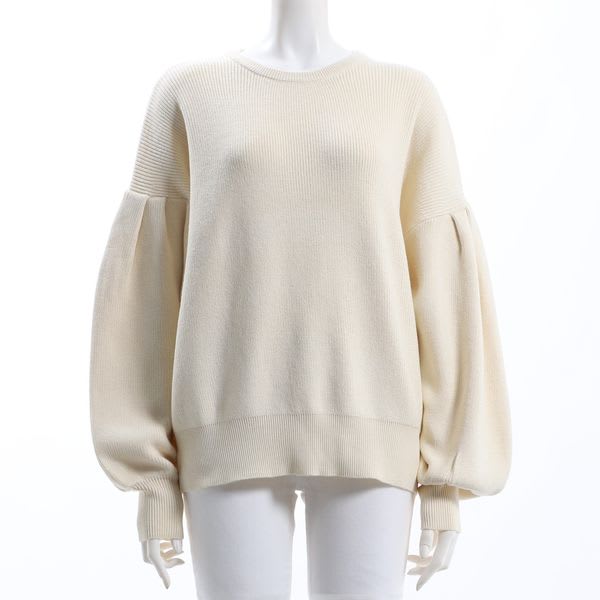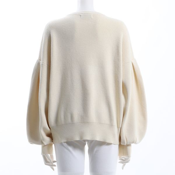 ボリュームスリーブニットです。プリーツスカートを合わせてフェミニンスタイルに、デニムパンツを合わせてカジュアルスタイルもいいですね。